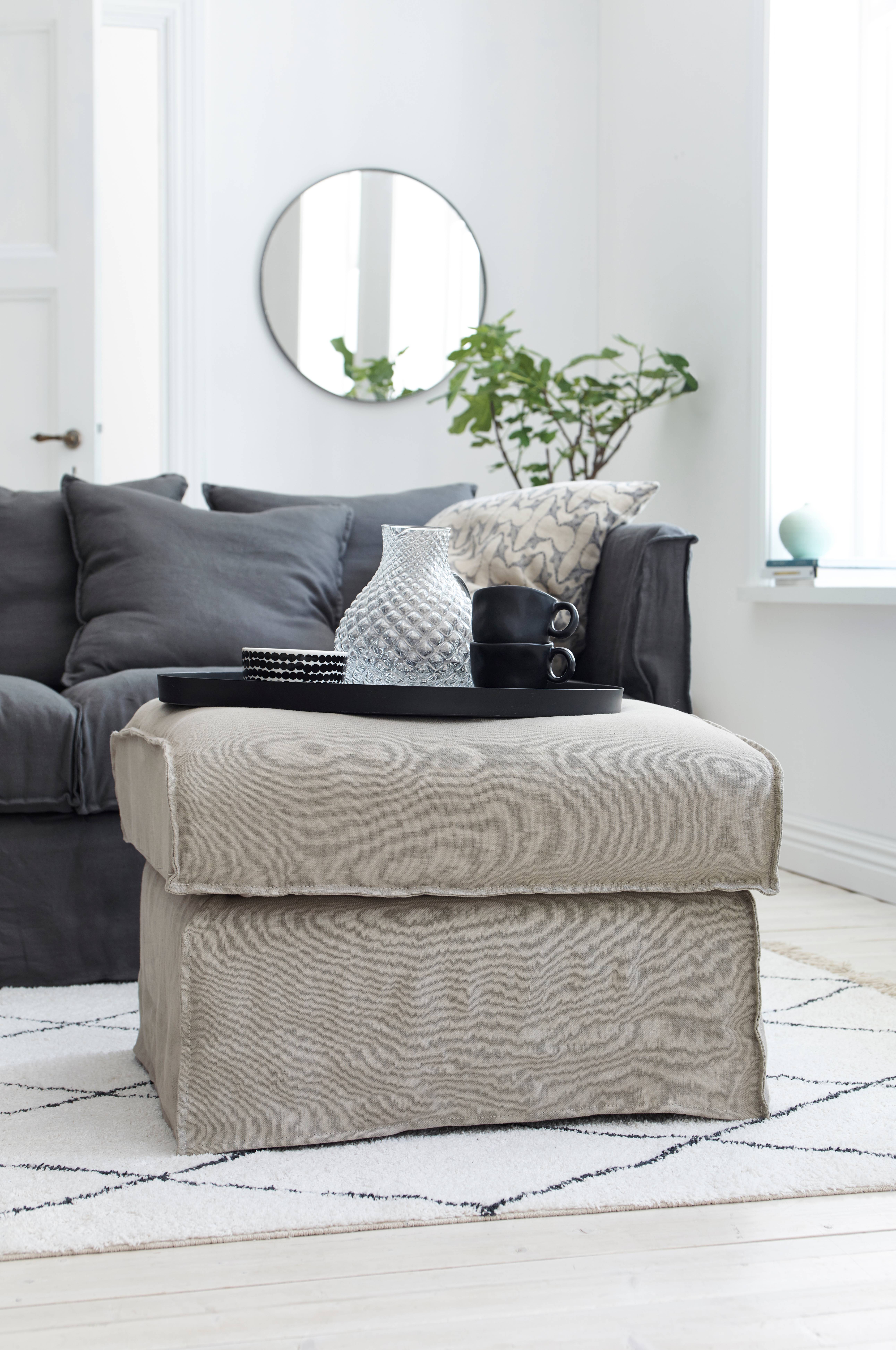 Ellos har designet nye sofamodeller, lænestole og fodskamler der produceres af Furninova, en svensk leverandør af kvalitetsvarer. Fodskammel Luna har et stel af massivt træ og støtte af plywood/spånplade. Blød komfort i koldskum svøbt med fjerpolstring. Nozagaffjedring for bedste komfort. Aftageligt betræk som kan vaskes på 30 grader. Mål: 70x60 cm, højde 46 cm. Vælg et unikt stonewashed betræk som passer til fodskamlen (51% polyester, 25% bomuld, 12% hør og 12% viskose). Martindale 25.000. Vægt 10 kg (læs om fragt og transportudgift under fanen Levering ). Leveres monteret. Benene sættes på ved levering.
