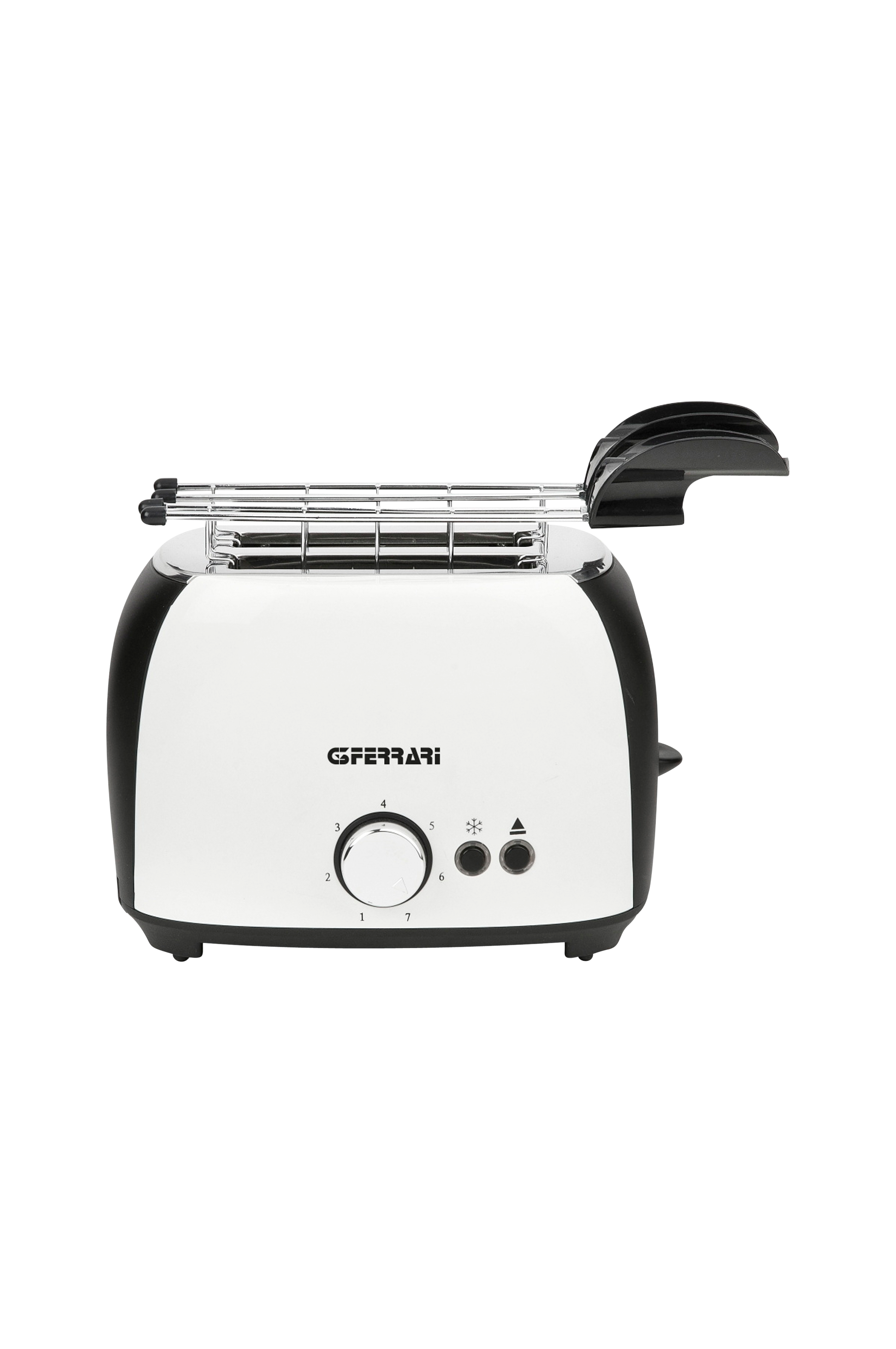 En lille og elegant brødrister fra italienske g3 ferrari, som er et af tre mærker, der har ret til at bruge navnet "ferrari". Brødristeren har 2 forskellige funktioner; ristning og optøning til ristning af frossent brød. Har timer, og ristningsgraden kan justeres i 7 niveauer. Brødristeren har store, brede huller og er velegnet til ristning af 2 skiver brød. Nem at rengøre, da den er udstyret med en krummebakke. Leveres med 2 riste i rustfrit stål. Strømforsyning; ac 230v, 800w