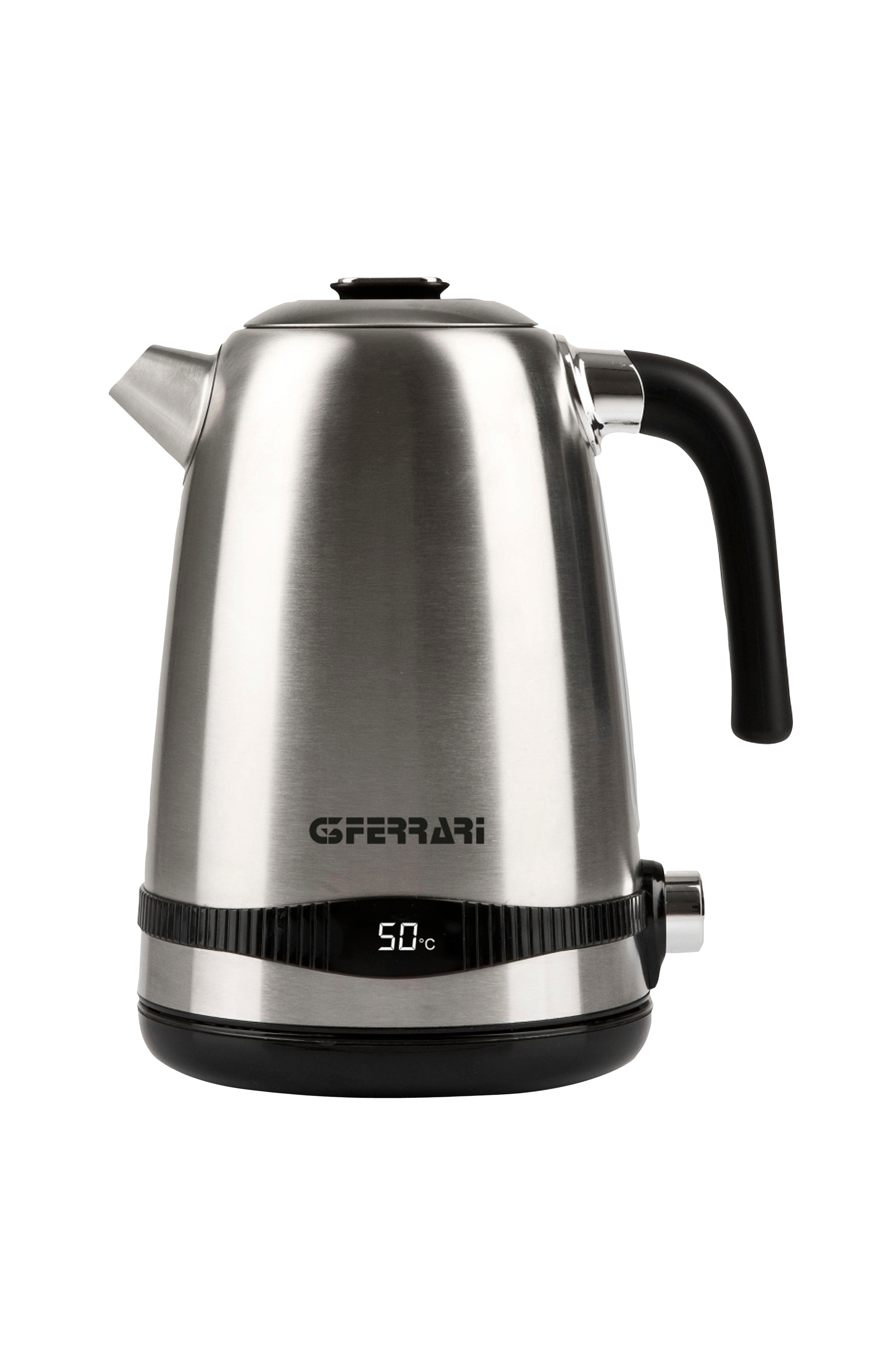 Kedel i rustfrit stål fra italienske g3 ferrari, som er et af tre mærker, der har ret til at bruge navnet "ferrari". Kedlen tisaniere har en kapacitet på 1,7 liter. Der er et display, som viser temperaturen. Den kan også justeres, så man kan indstille den ønskede temperatur 40-50-60-70-80-90-100°c. Kedlen har en overophedningsbeskyttelse, og varmeelementet er beskyttet. Slukker automatisk. Kan drejes 360 grader, og ledningen kan drejes ind i bundpladen. Strømforsyning; ac 220-240v