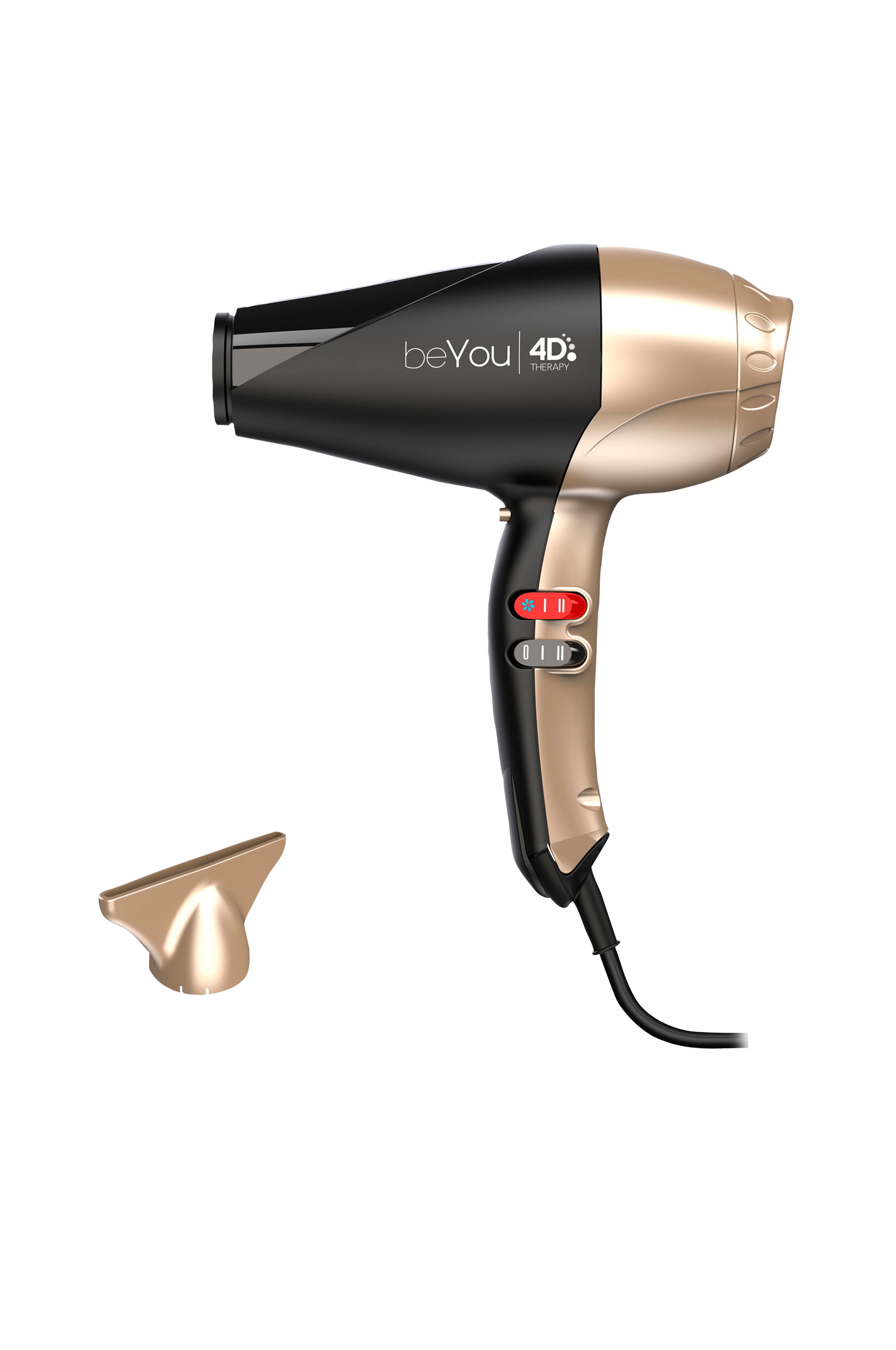 BeYou 4D Therapy Ultra Ozono er en Gama-føntørrer, der kombinerer ozonionens anti aging-egenskaber med fordelene ved ioner. Ozonioner renser hovedbunden og øger dens iltning, hvilket har en foryngende effekt på hår, der bliver stærkere, mere elastisk og fuld af liv. Ion Plus-teknologien frigiver 80% flere ioner end traditionelle teknologier, hvilket hjælper håret med at genopbygges, eliminerer krus og gør det skinnende.