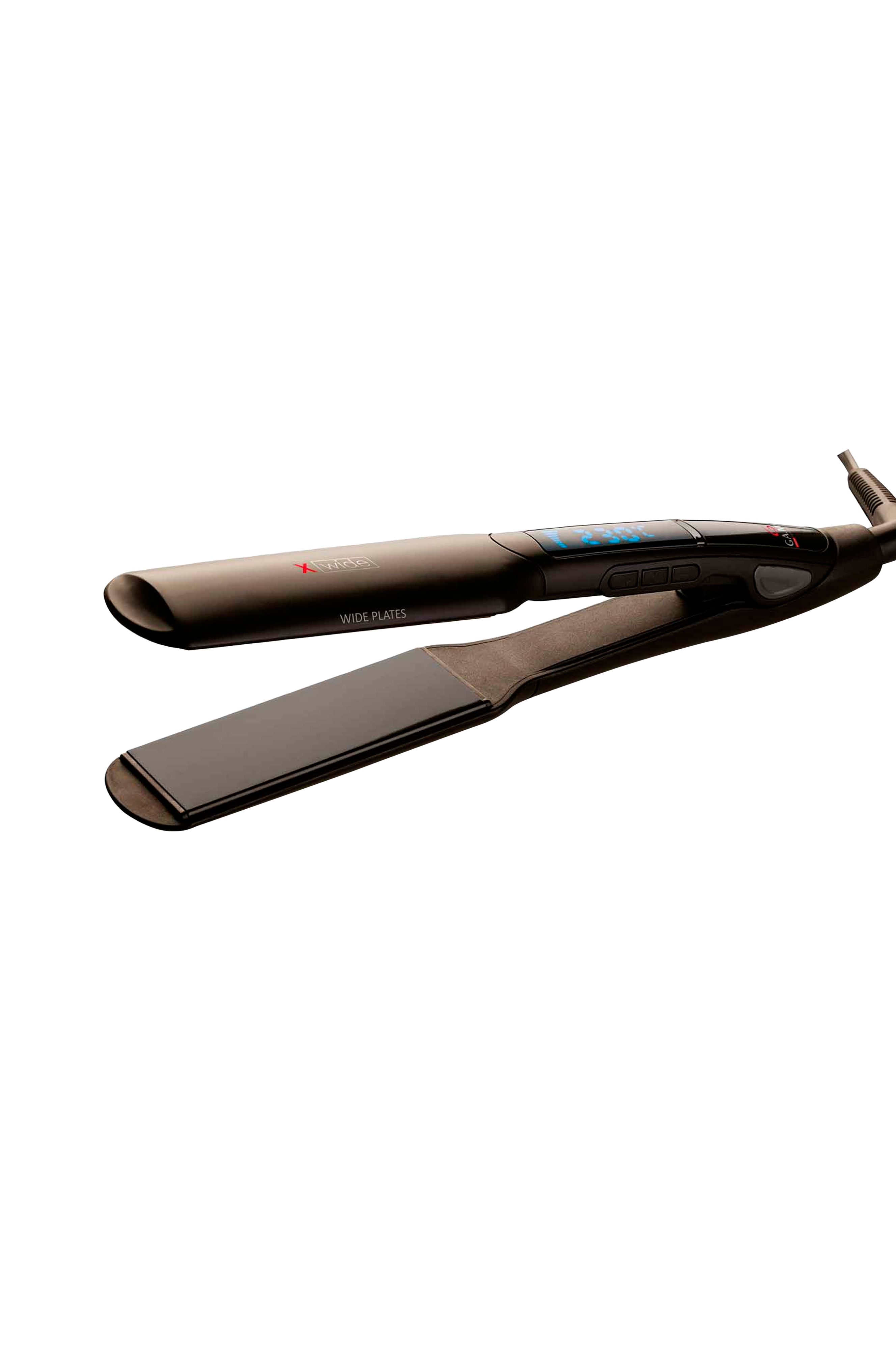 Et bredere glattejern for det længere hår, som giver dig et lige, blankt hår samtidig med at du beskytter det. Pladerne er beklædt med tourmaline som er et smidigt materiale, der glider let hen over håret og reducerer kontakten med varme, da det udleder negativt ladede ioner.