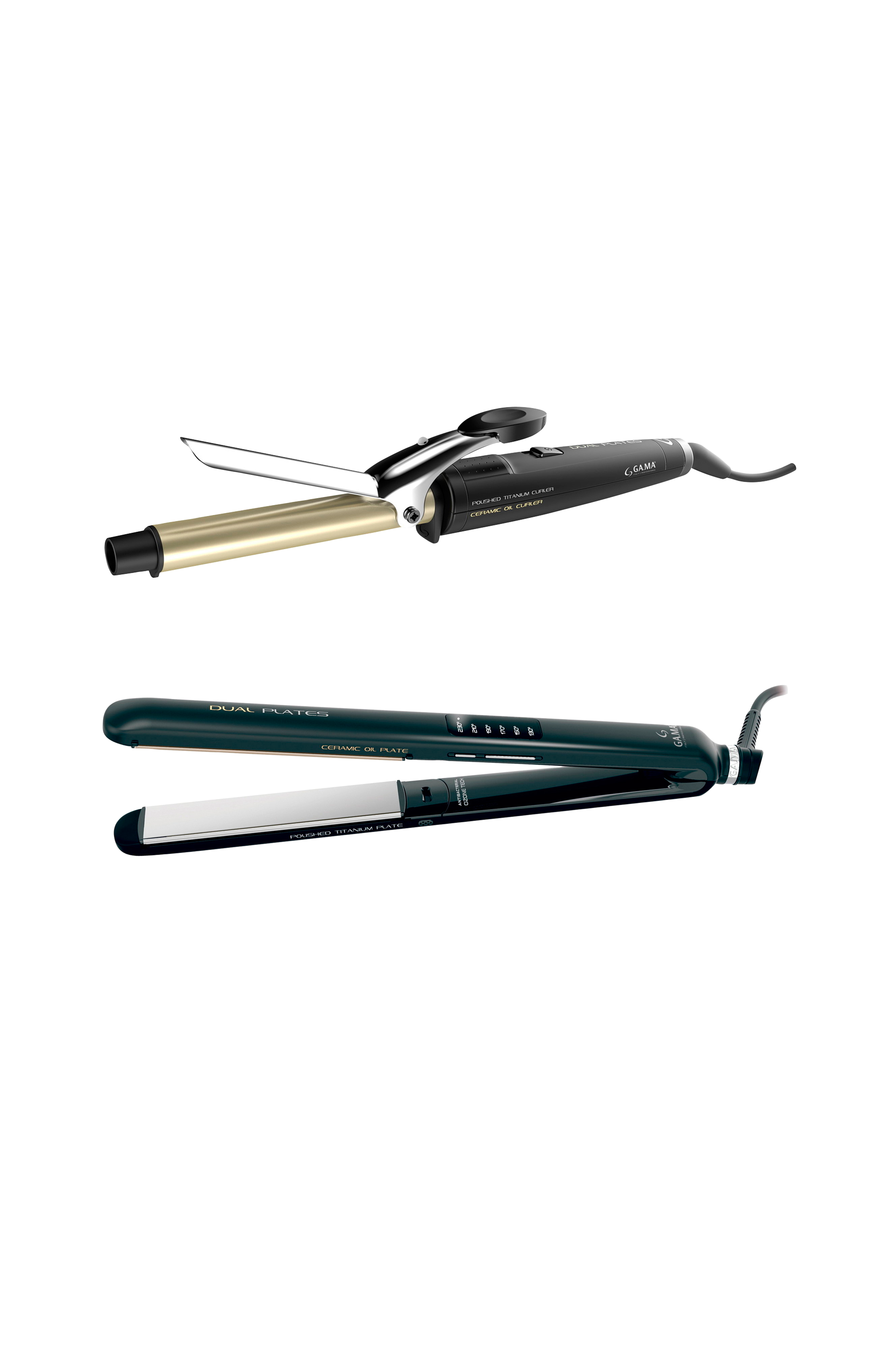 Oplev det ultimative hårstylingssæt fra Ga.Ma med krøllejern og glattejern.