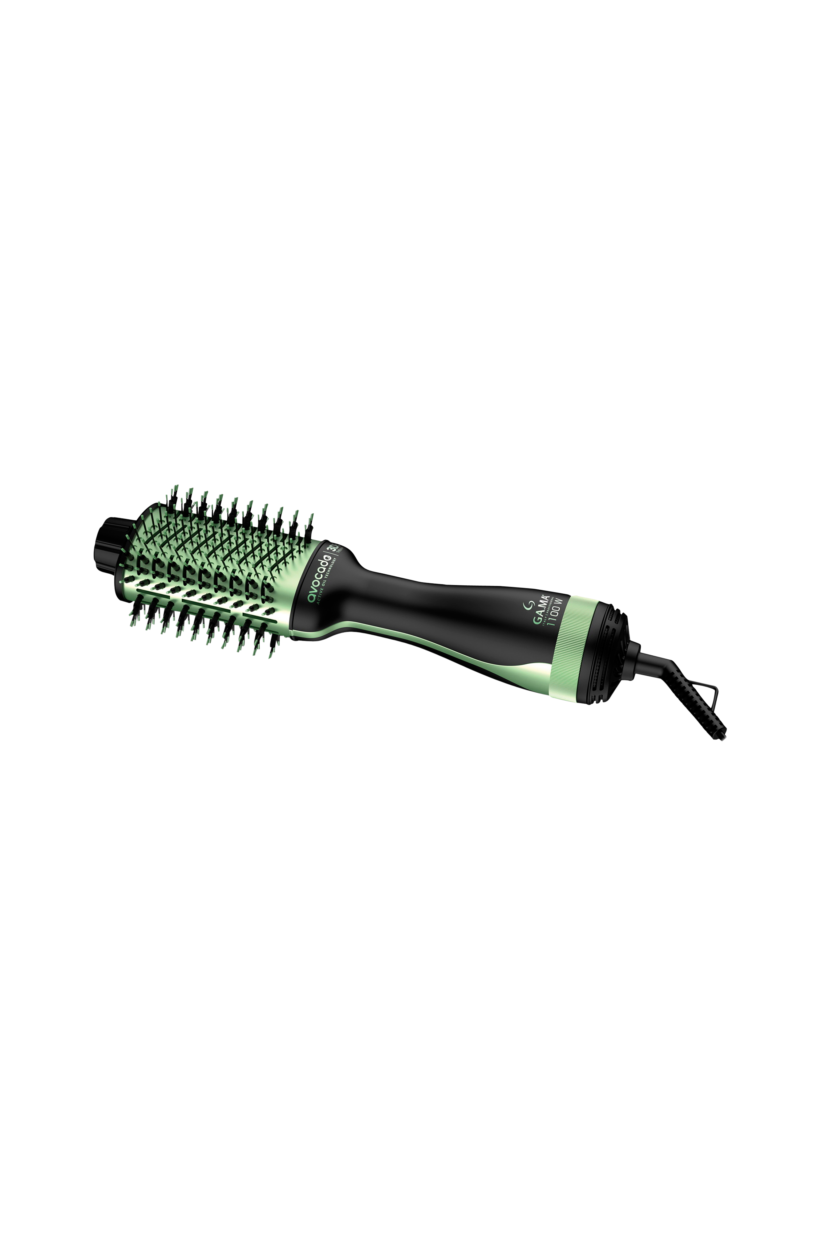 Varmluftsbørste designet ved hjælp af de specifikke næringsstoffer fra de æteriske avocado- og macadamiaolier. Olierne ligger som et lag over børsterne og indeholder en høj mængde E-vitamin, som er et mikronæringsstof, der er gavnligt for håret. Macadamiaolie er en fremragende ingrediens, der modvirker krus, nærer hårstråene og forhindrer spaltede spidser. Dens blødgørende egenskaber giver håret ny struktur og næring uden at tynge det ned. Avocadoolie er rig på essentielle fedtsyrer, som styrker håret, stimulerer hårvæksten og gør håret blankere og stærkere. Tilsammen gør disse egenskaber håret sundt, skinnende og stærkere.