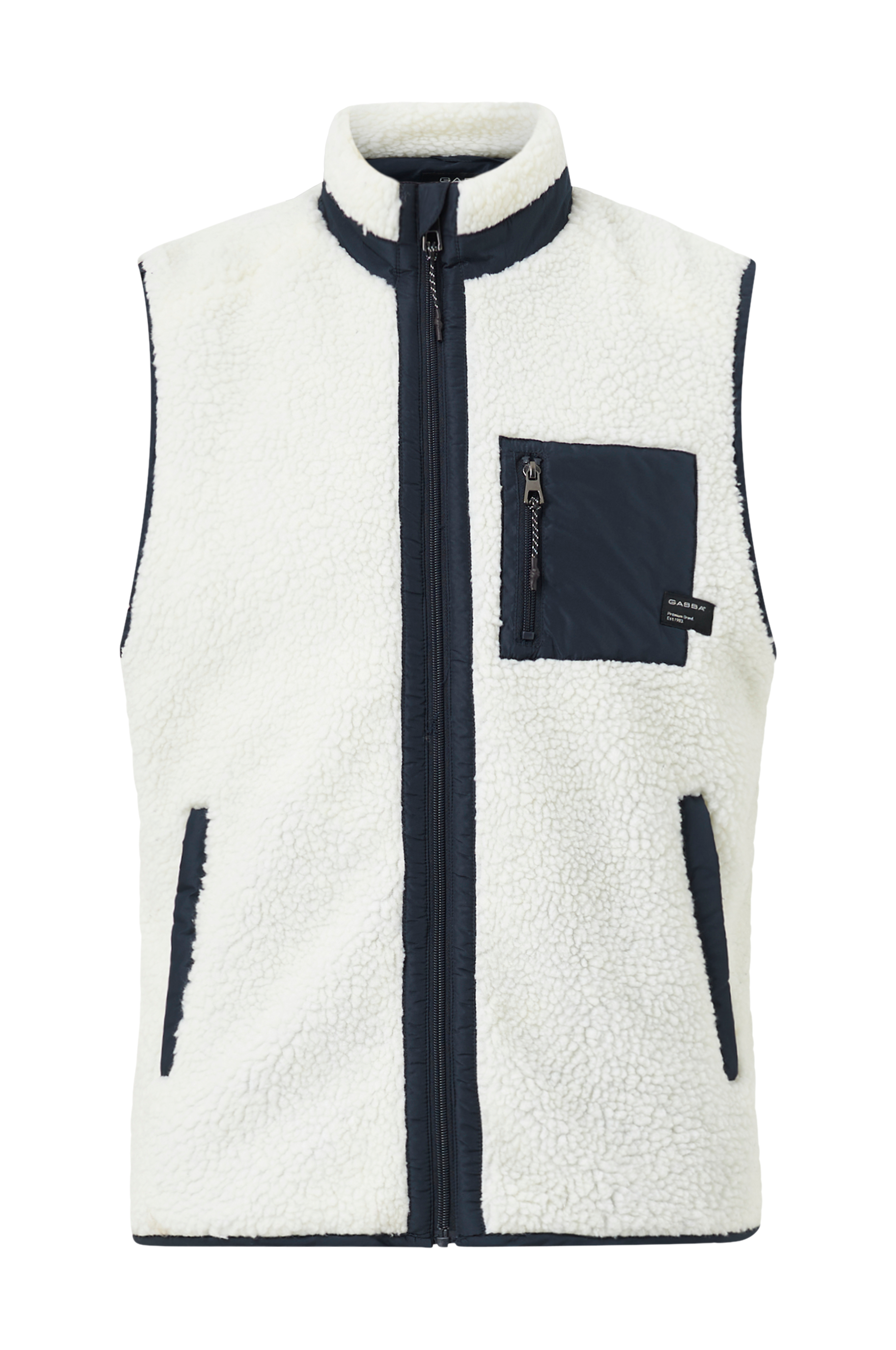 • Vest i bamsefleece• Ståkrave med vævet indlæg• Lynlås• Brystlomme i vævet del med lynlås• To lynlåslommer nederst• Elastiske kanter omkring ærmeåbningerne