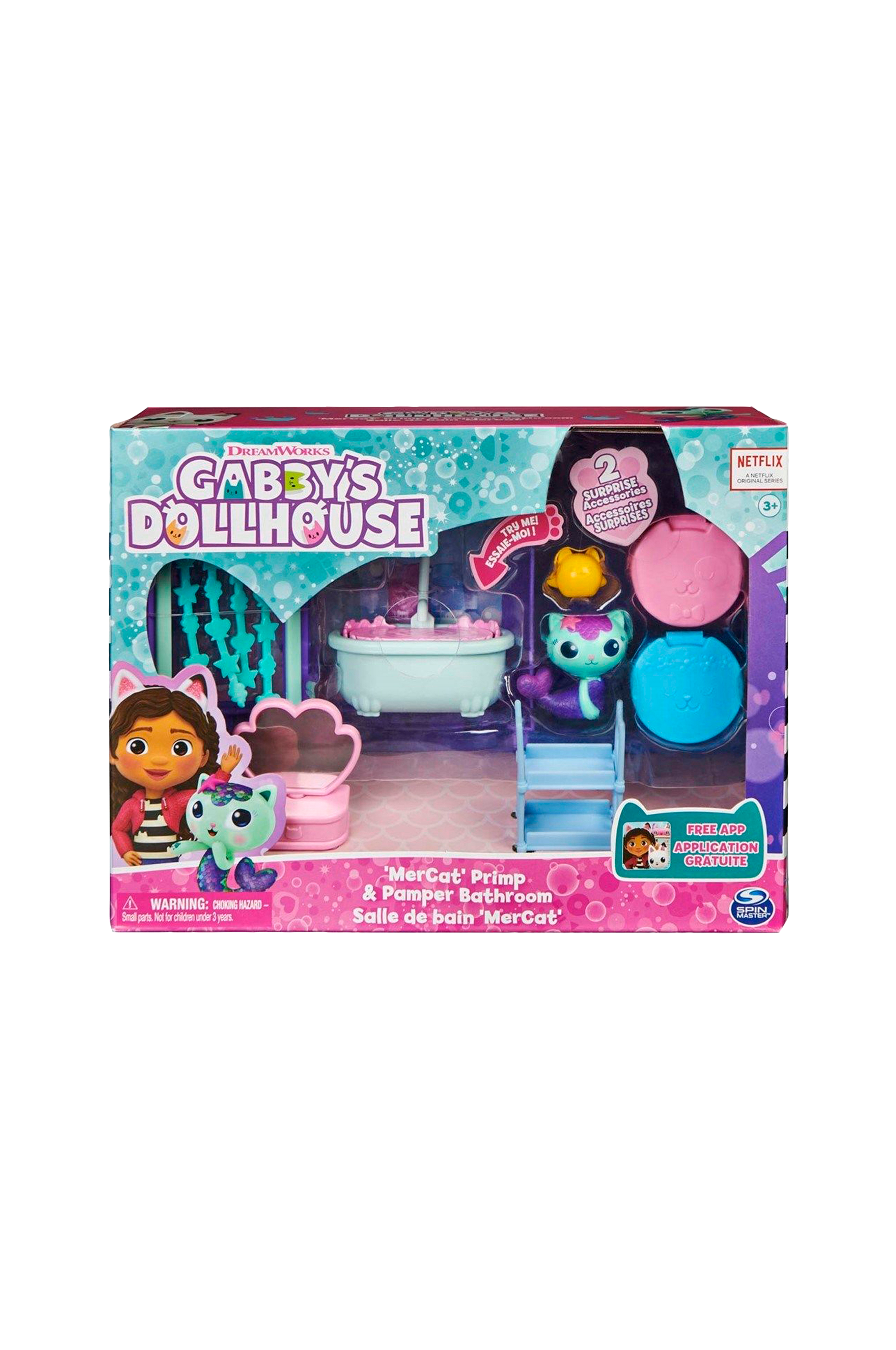 Legesæt, som er fuld af sjove detaljer og overraskelser, der kan udforskes. Åbn æsken, og find en Havkat-samlerfigur, tre møbler, en gummiand i form af en kat, samt to dukkehusleveringer med yderligere to stykker overraskelsestilbehør - en parfumeflaske og et håndklæde med agurkemaske, som Havkat kan have rigtigt på.