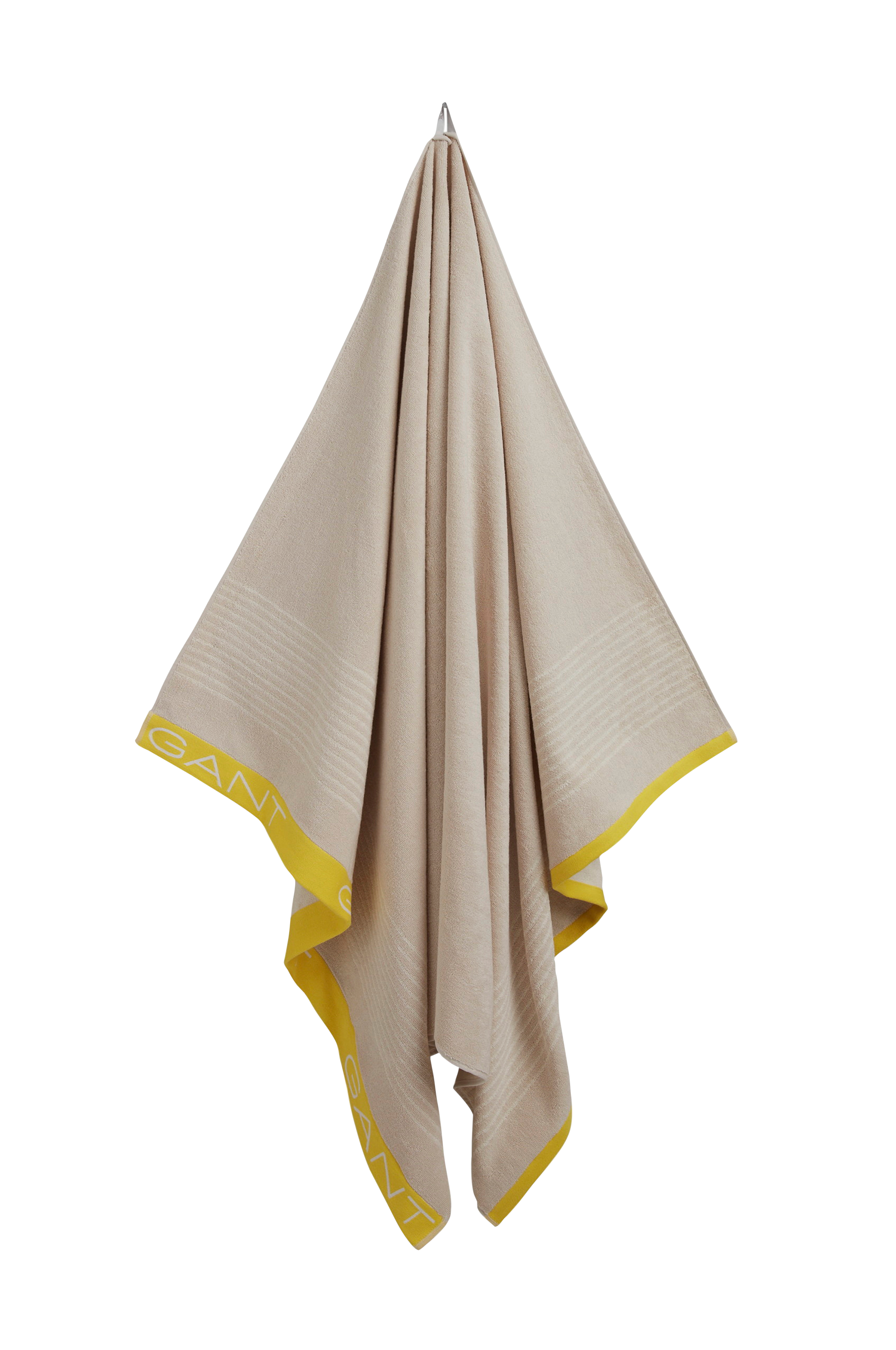Badehåndklæde i økologisk bomuld med striber og en kant med GANT-logo.