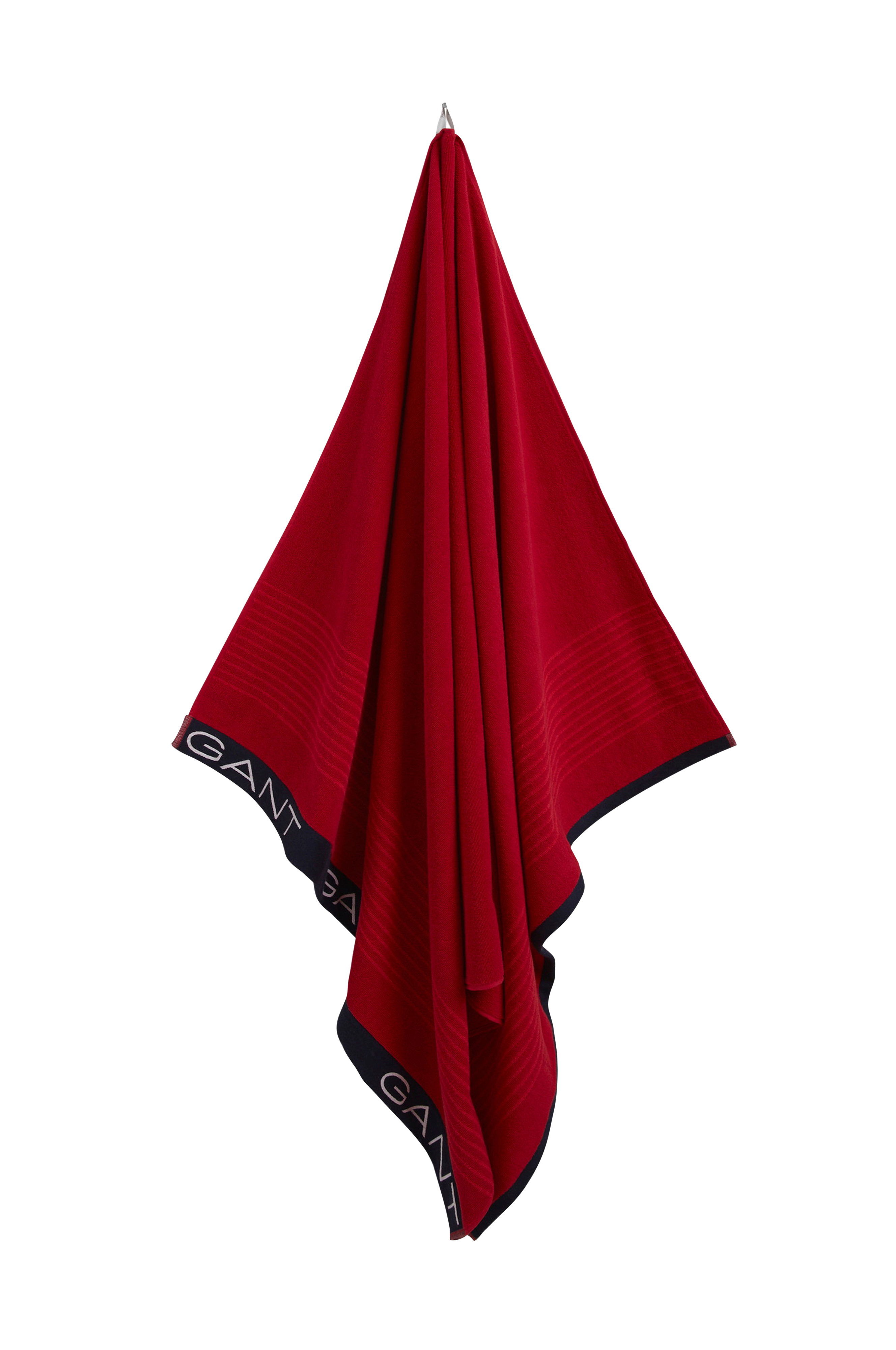 Badehåndklæde i økologisk bomuld med striber og en kant med GANT-logo.
