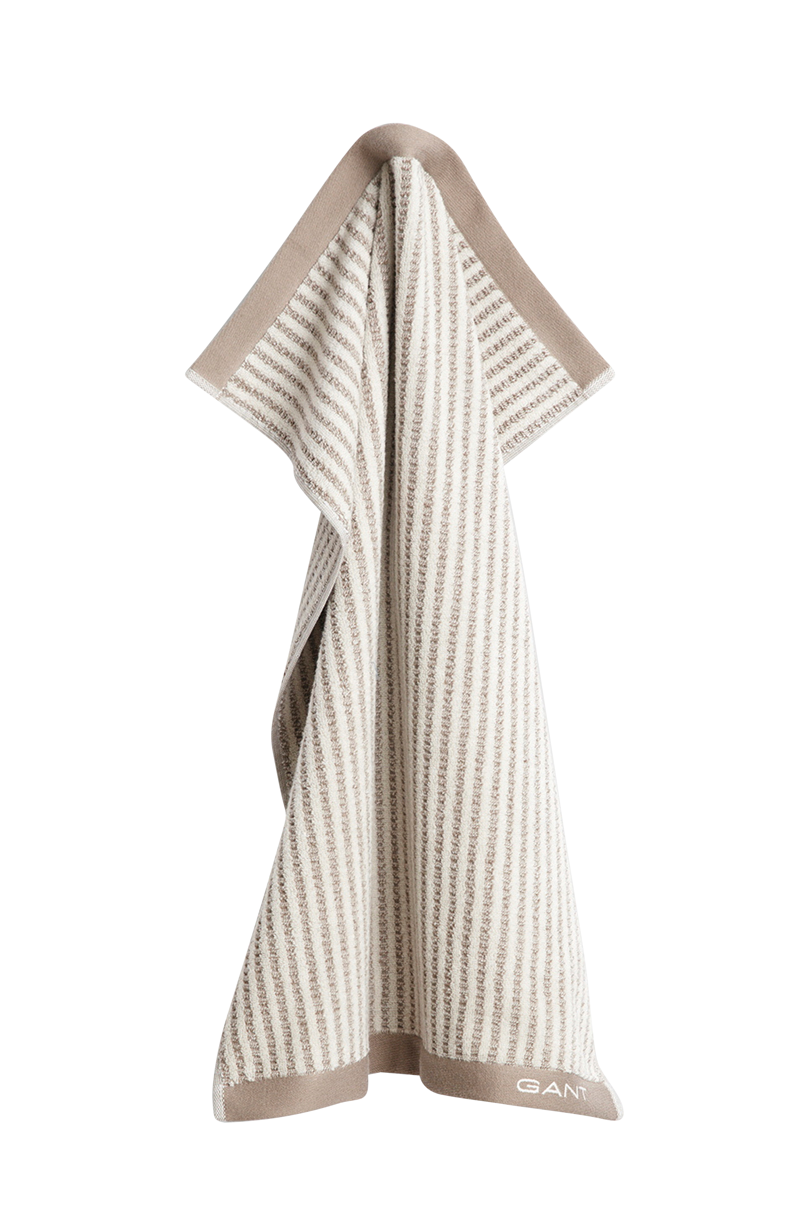 Dette håndklæde på 50 cm x 70 cm giver et strejf af elegance og maritim charme til ethvert badeværelse. Det har jacquardvævede striber og et Gant -logo i kanten. Fremstillet af økologisk bomuld. Frottévævet med en vægt på 550 g/m2 har en innovativ plantebaseret finish, som gør det ekstra tykt, meget absorberende og utroligt blødt.