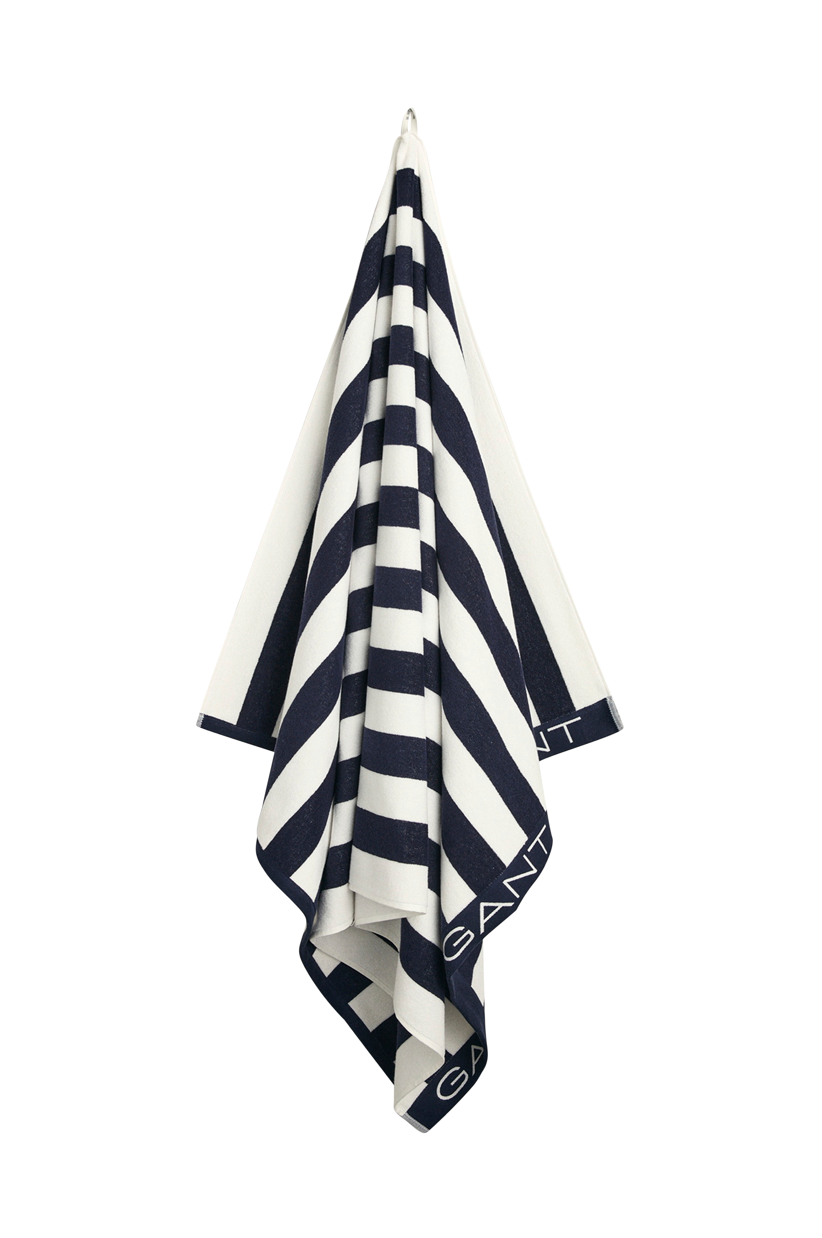 Dette badehåndklæde i frotté er designet med blokstriber for et nautisk præg, og er det perfekte sommertilbehør til pooldage, stranddage og mere. Det er fremstillet af certificeret økologisk bomuld og med en absorberende og tyk vægt på 450 g/m2. Det har et GANT-logo i jacquard i kanten forneden.