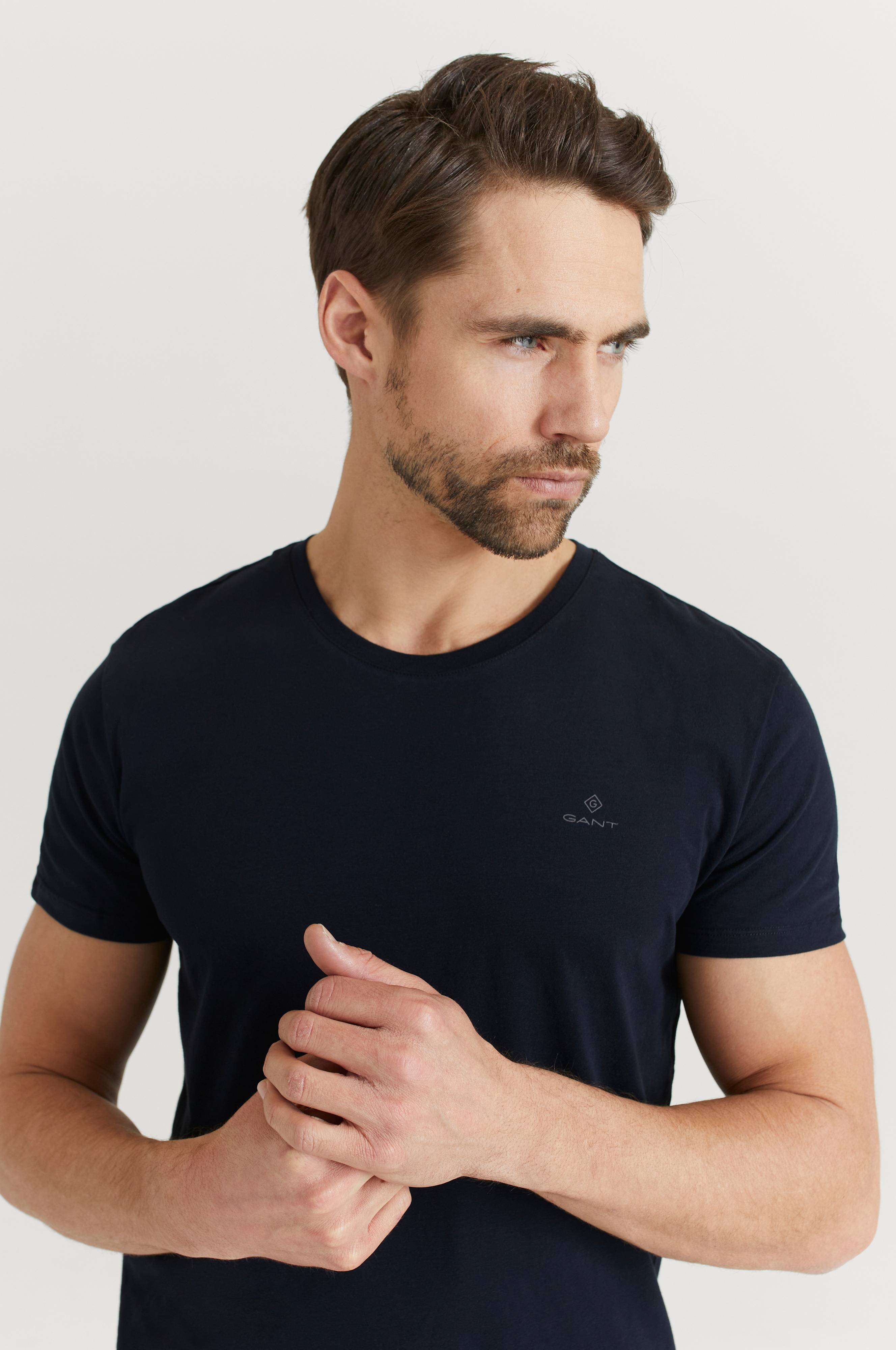 2-pak t-shirts fra Gant med to ensfarvede t-shirts. Pasformen er smal. Med printet logo. Lige snit forneden og rund hals med ribkant.