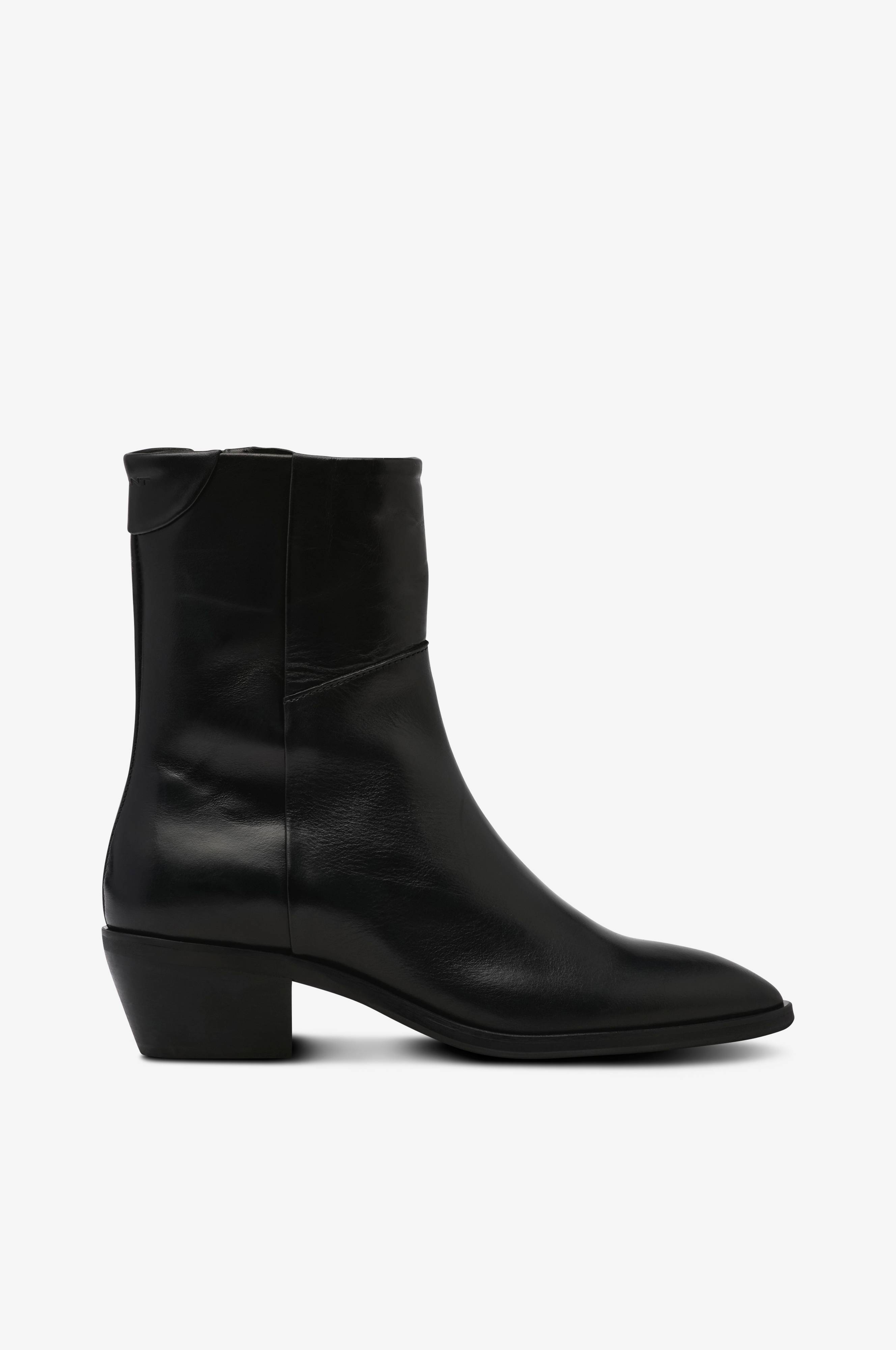 • Boots i læder• Spids tåform• Lynlås på indersiden af skaftet• Tekstilforing• Læderbetrukket indersål• Skafthøjde: 18 cm i str. 37• Hælhøjde: 4 cm
