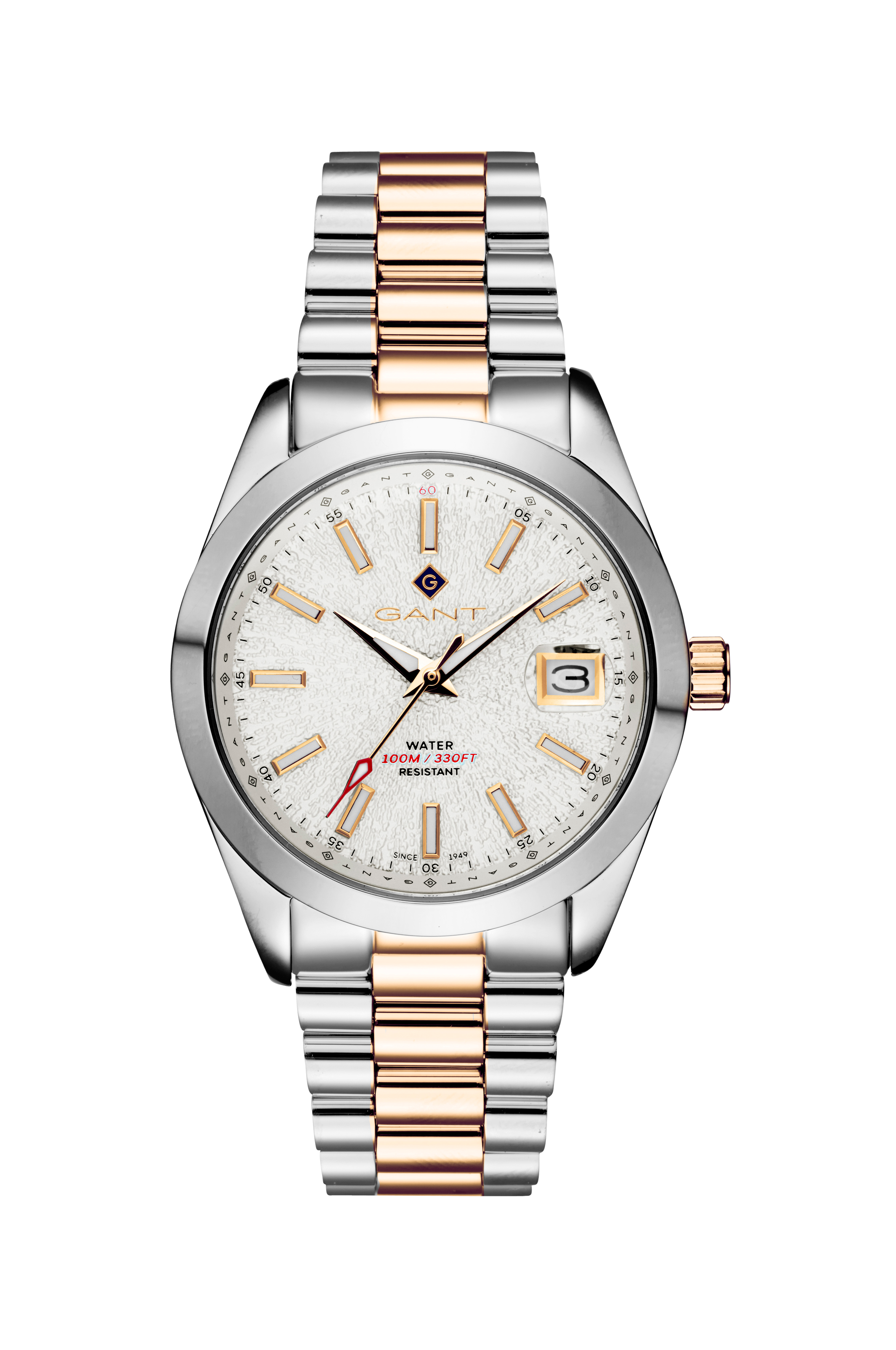 Vi har anvendt eksklusive og luksuriøse materialer til at skabe en damekollektion som er en hyldest til vores baggrund inden for amerikansk sportsmode. Dette 38 mm ur er fremstillet i rustfrit stål og har en trelænket stålrem samt tre visere samt datovisning.