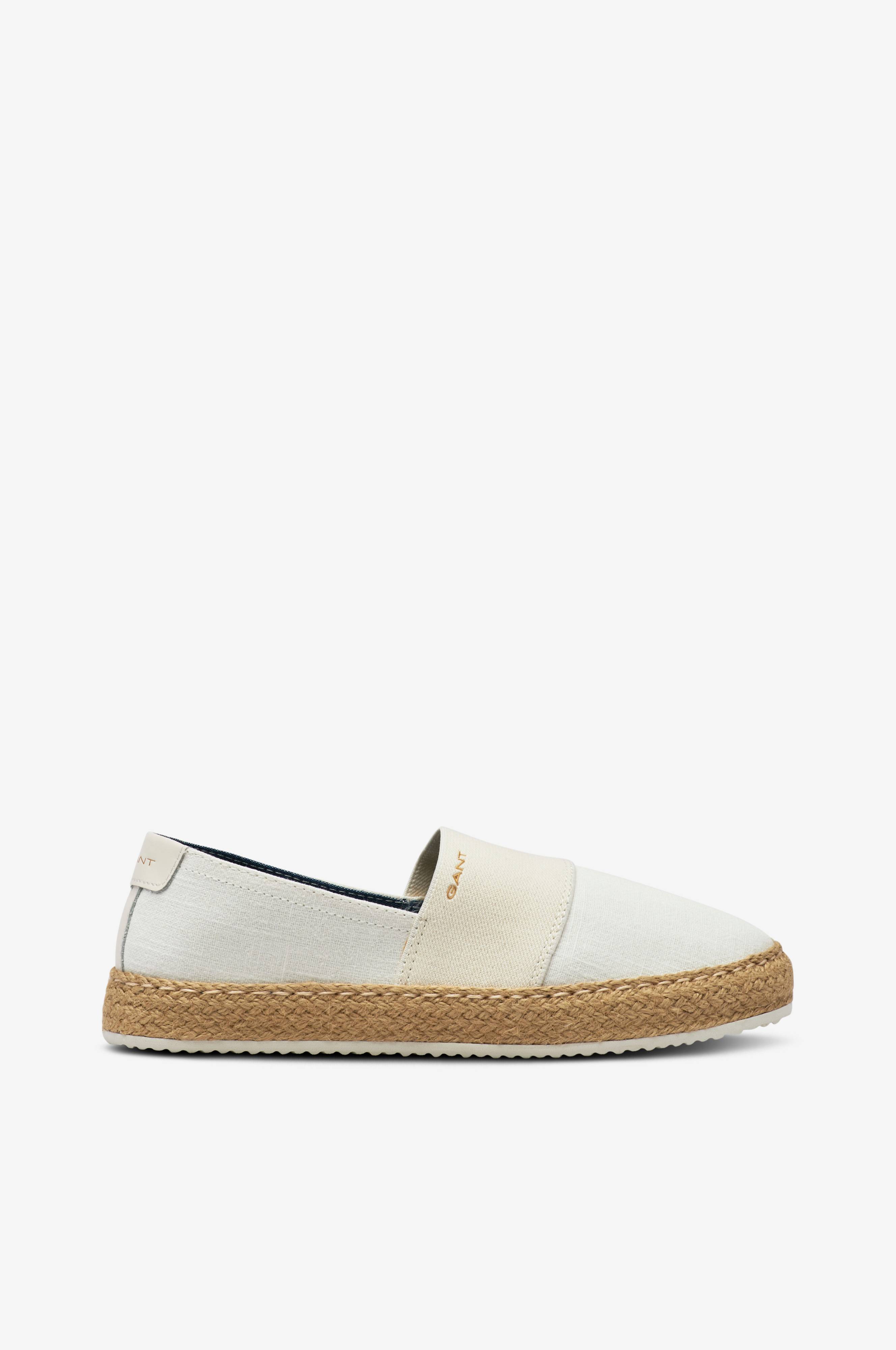 • Øvredel i hørstof• Blød polstret indersål• Rebbeklædt midtersål