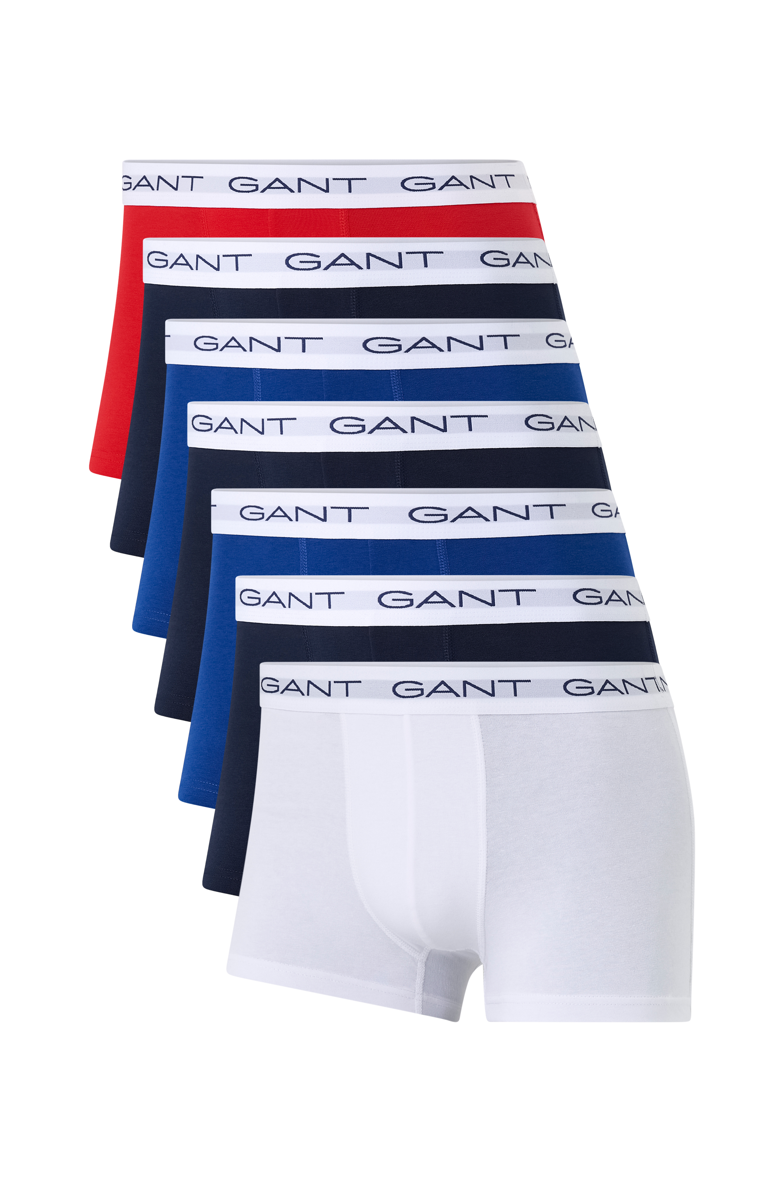 Gant's undertøj leverer støttende, komfortable pasformer i materialer af høj kvalitet. Disse trunks i bomuldsstretchjersey fra Gant kommer i en 7-pak i klassiske, ensfarvede farver. De har en slank pasform, almindelig talje og kort benlængde. Hver trunk har en jacquardstrikket elastisk linning med gentagne Gant logoer.