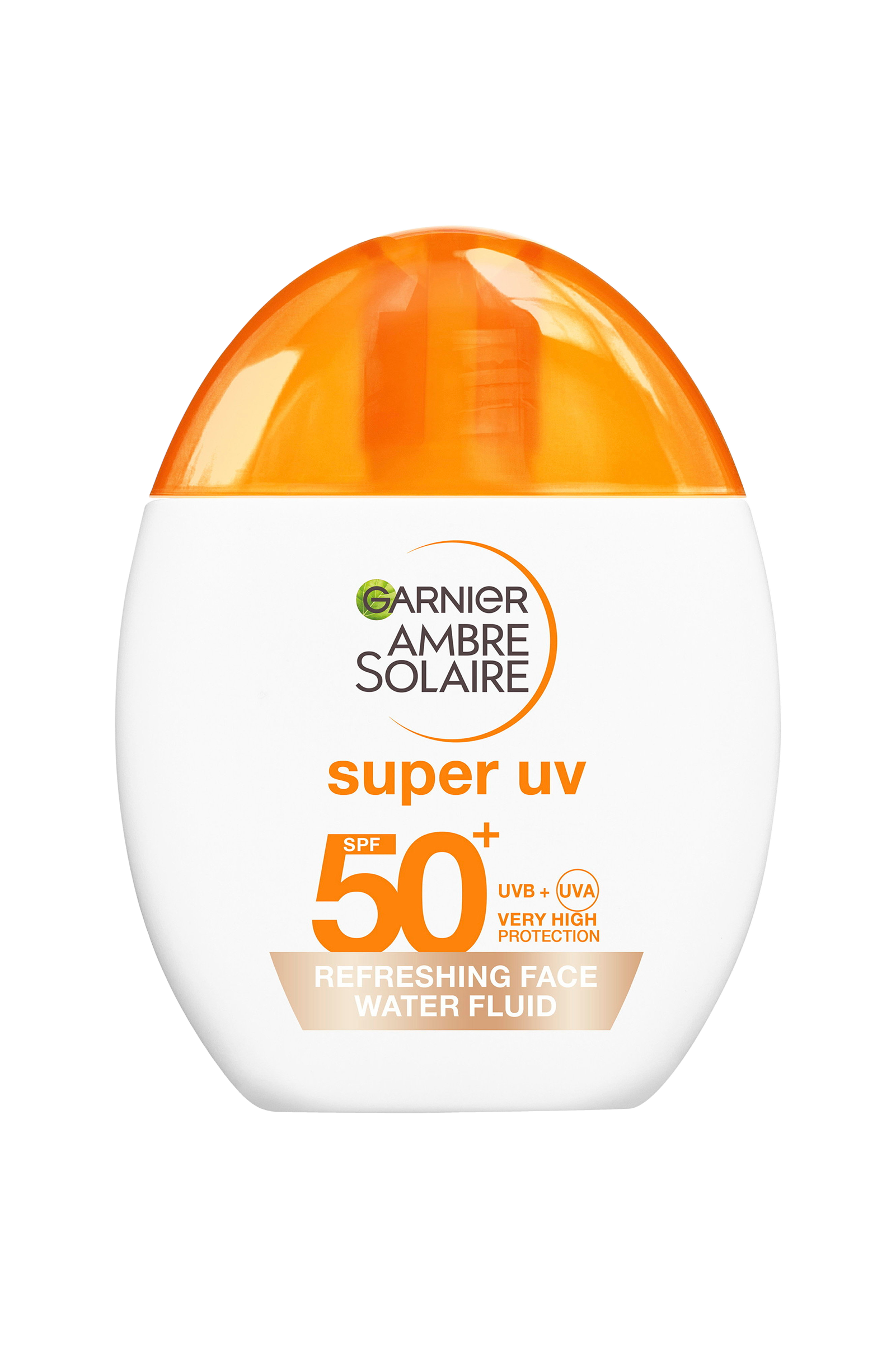 Garnier Ambre Solaire Super UV Refreshing Face Water Fluid SPF50+ er en parfumefri solcreme til ansigt og øjenområde. Produktet er til dig, der ønsker daglig, meget høj solbeskyttelse med en let og opfriskende*** fornemmelse. Teksturen føles let, frisk og ikke klistret. Den let farvede formel giver en flot glød og et fejlfrit look****.