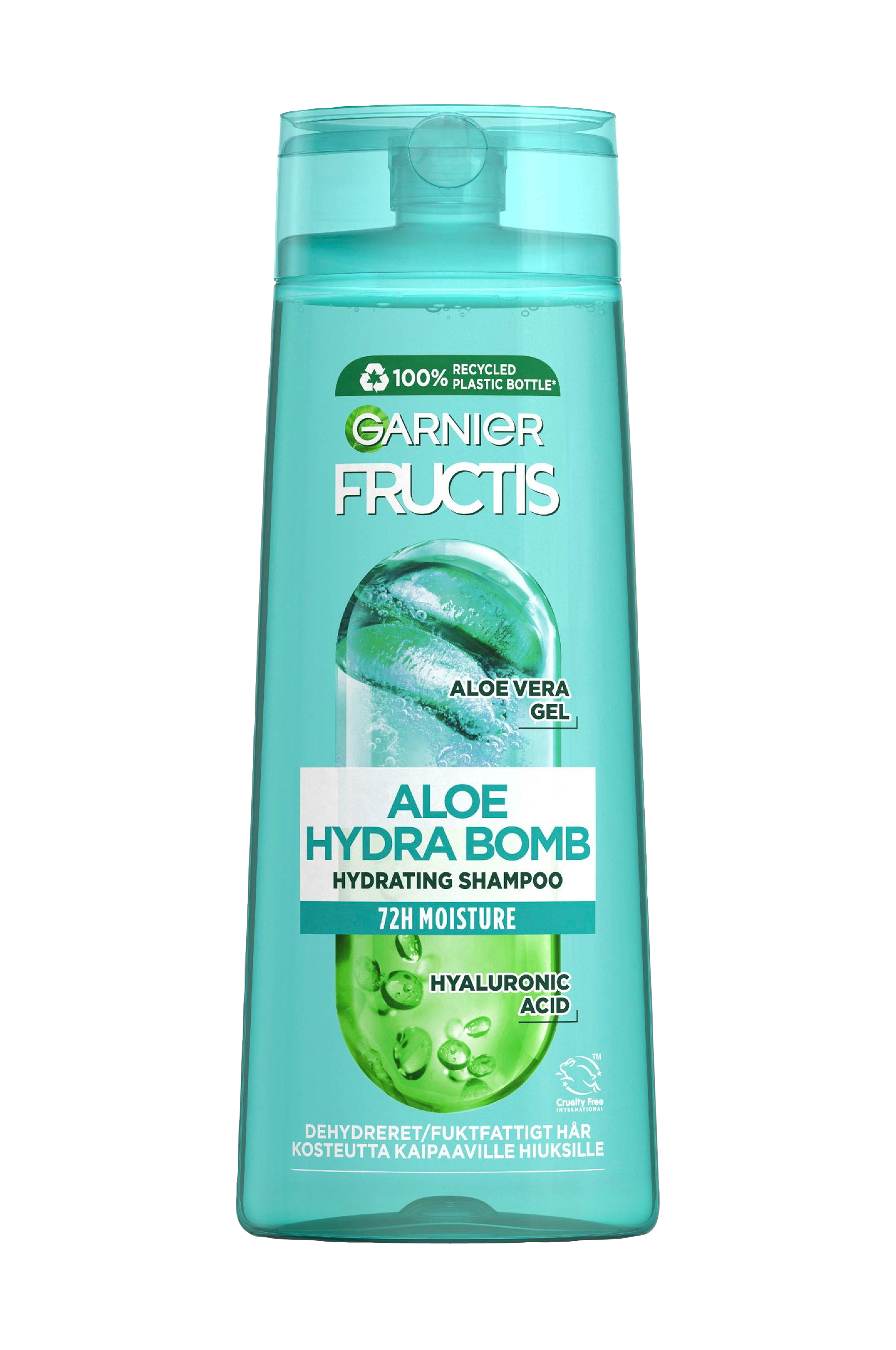 Er du klar til at forvandle dit tørre hår? Lad Garnier Fructis Aloe Hydra Bomb fugtgivende shampoo til dehydreret og normalt hår hjælpe dig. Efterlader dit hår blødt, let og fugtet i 72 timer.* Vegansk formel** som er beriget med aloe vera gel og hyaluronsyre som giver fugt til dit hår uden at det tynges ned. 100% genanvendt plastikflaske*** som også er 100% genanvendelig, naturligvis. Garnier er officielt godkendt af Cruelty Free International under Leaping Bunny-programmet.