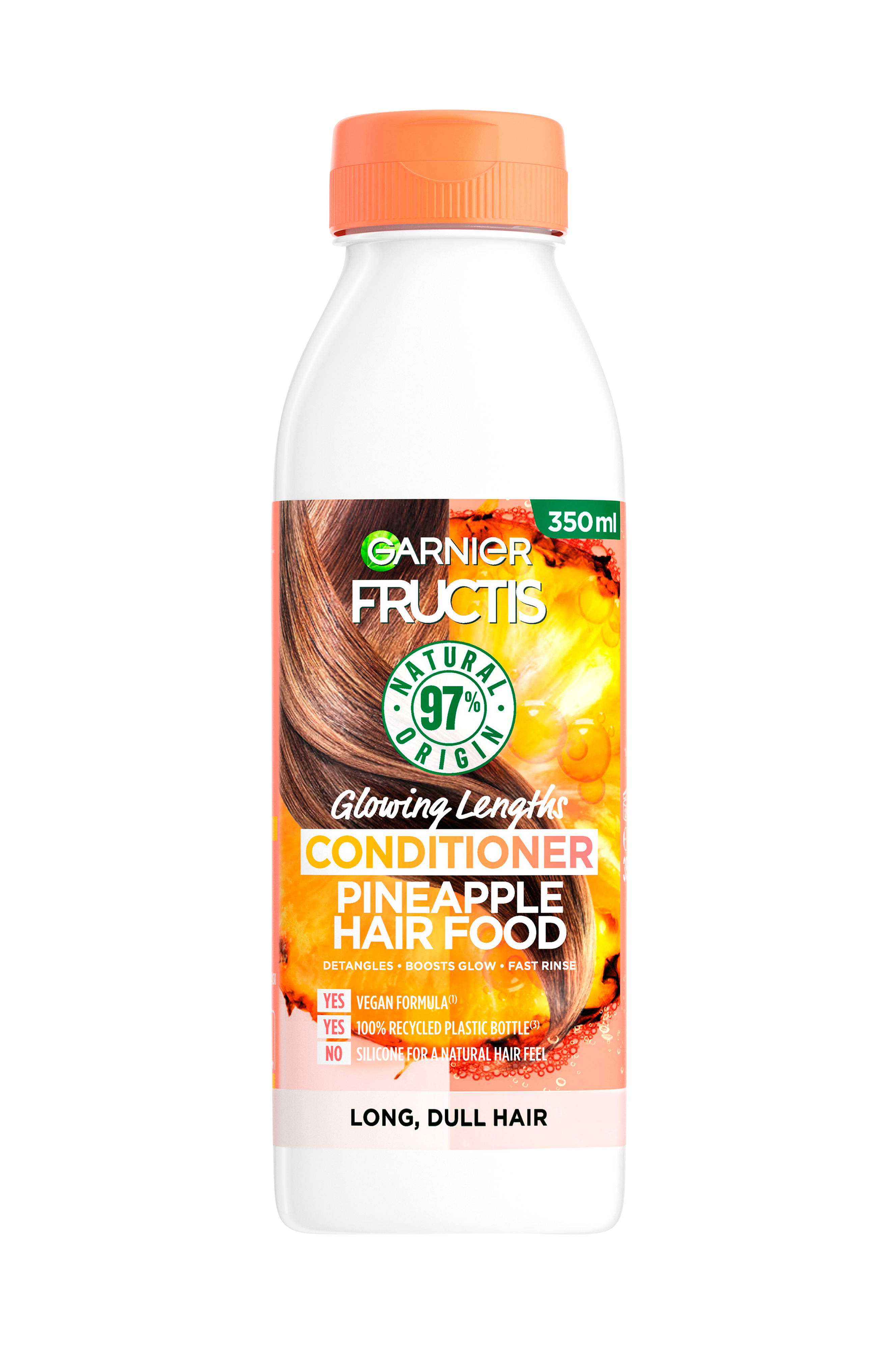 Garnier Fructis Hair Food Pineapple balsam er udviklet til langt hår, der ser kedeligt ud. Uden silikone for et naturligt udtryk. Håret bliver let at rede ud.