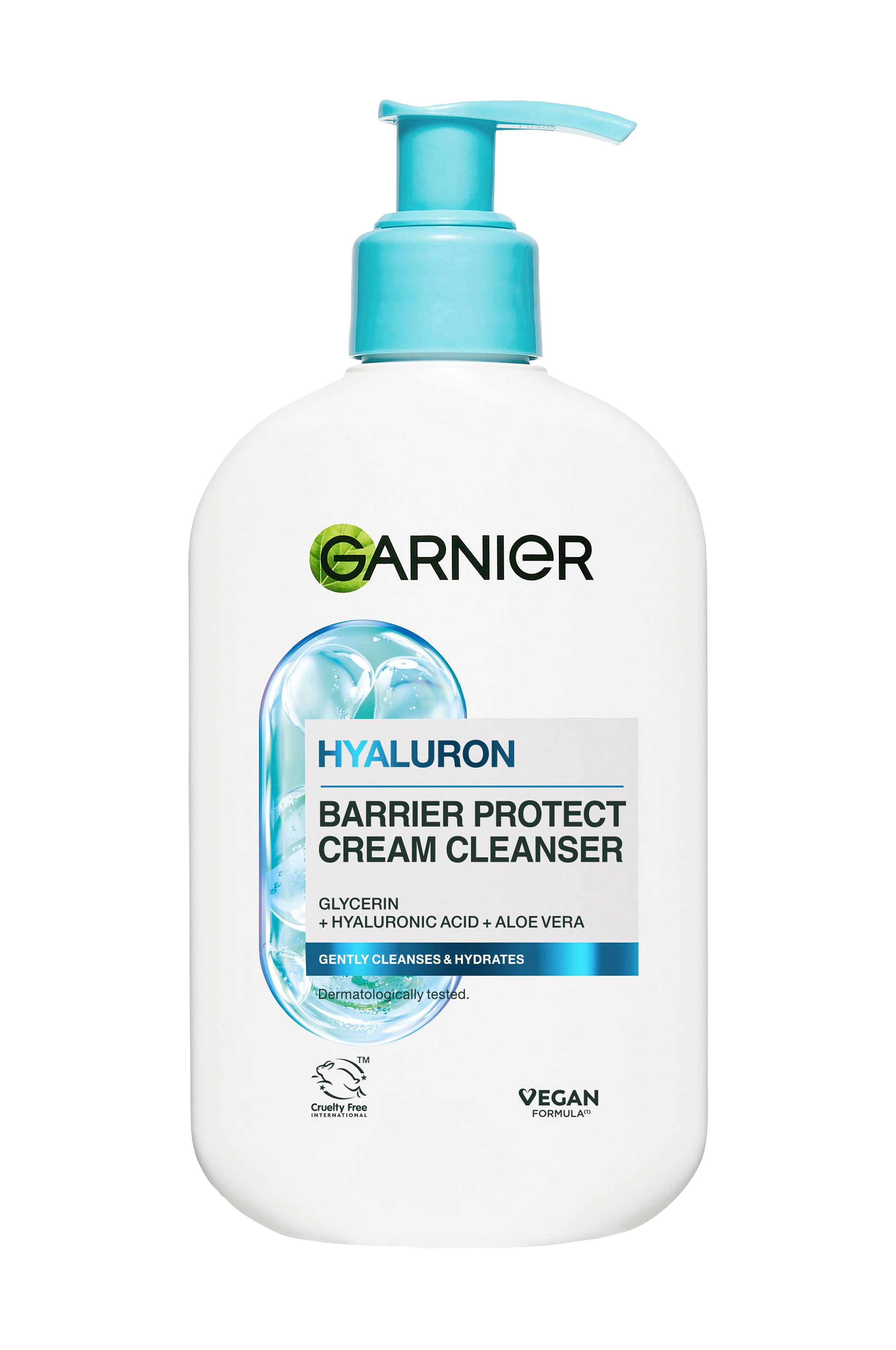 Garnier Hyaluron Barrier Protect Cream Cleanser rensekrem er en beroligende rensekrem som skånsomt fjerner makeup og urenheter samt fukter og renser huden din. Formelen hjelper til å opprettholde hudens naturlige fuktbarriere og er beriket med aloe vera og hyaluronsyre.