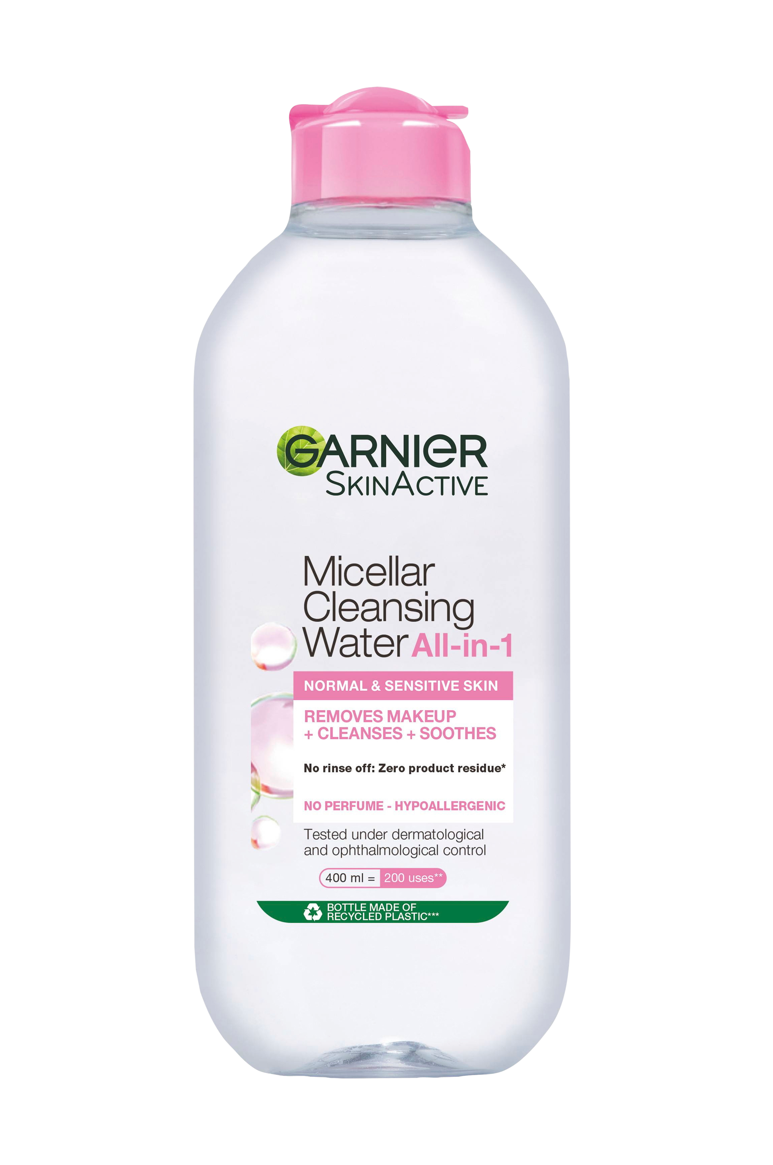 Oplev et renseprodukt med micellær teknologi, der tiltrækker snavs som en magnet, Garnier Micellar Cleansing Water - rensevand til normal og sart hud. Velegnet til dem, der ønsker et effektivt, hurtigt og enkelt produkt, der renser huden og fjerner makeup. Du kan bruge den plejende formel på alle områder i ansigtet (ansigt, øjne, læber). Resultatet er en behageligt renset hud.