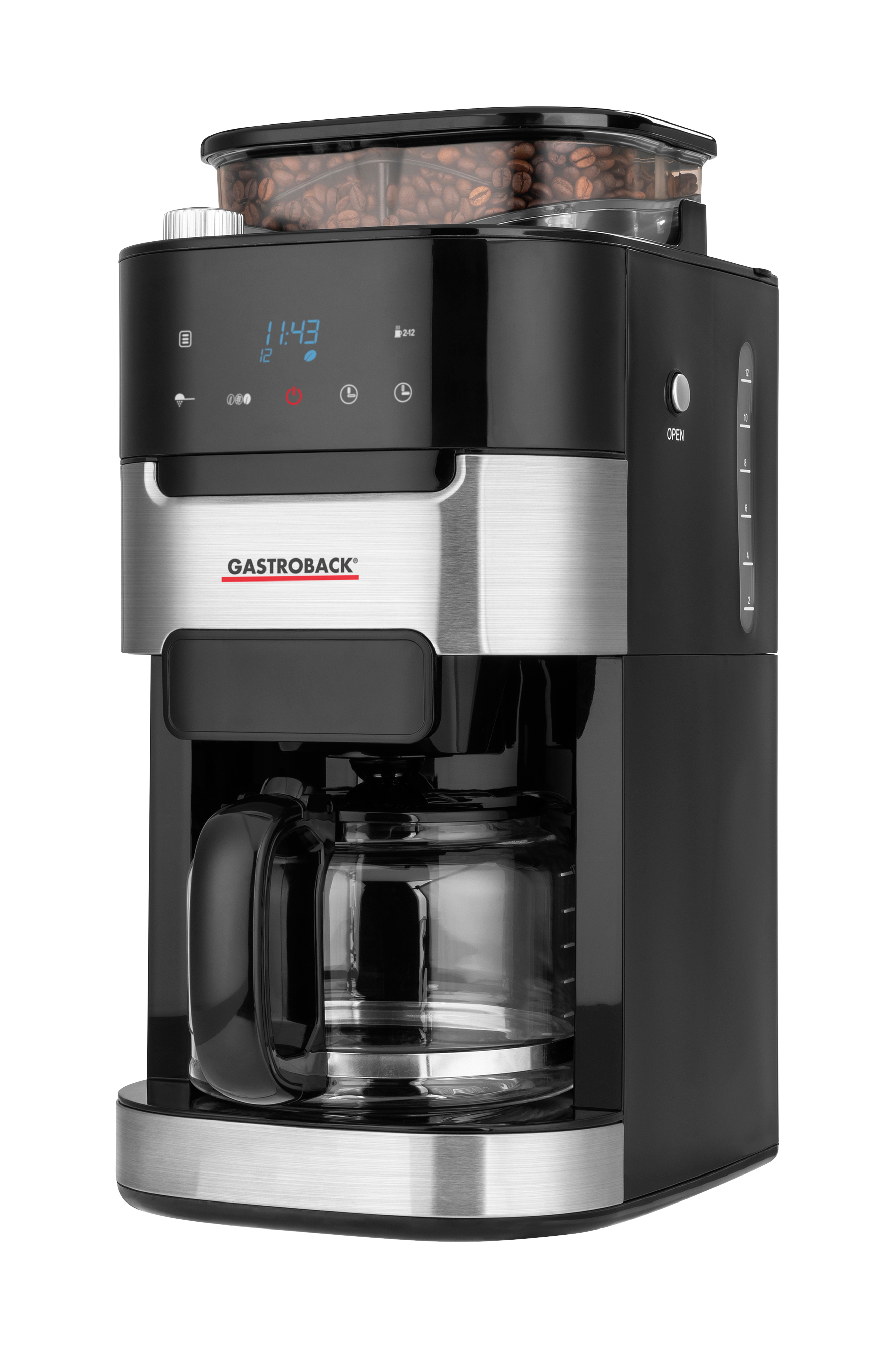 Filterkaffemaskine med integreret kværnKonisk kværnmekanisme med 8 formalingsniveauerSoft touch Lcd display