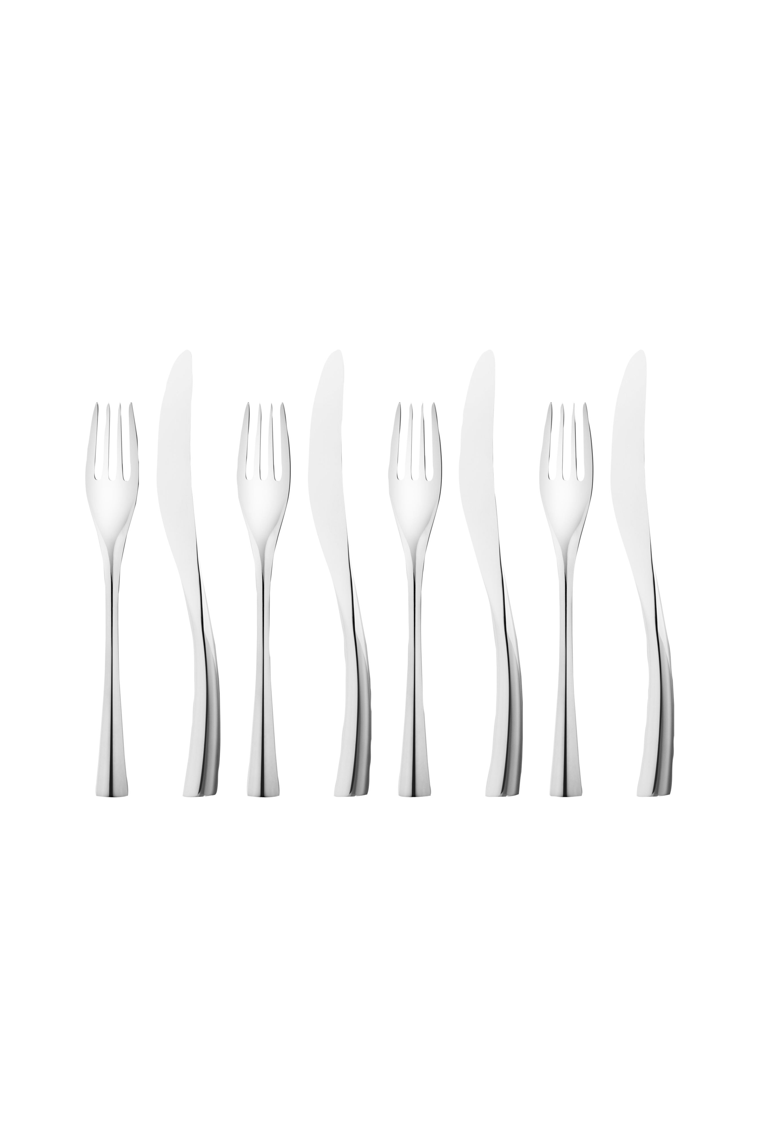 Gaveæske med et elegant bestiksæt i en af Georg Jensens mest kendte kollektioner: Cobra. Det bølgende signaturformsprog gentages i hele bestiksættet. De forskellige dele er lette, og bestikket er nemt og behageligt at holde om. Dette sæt består af fire frokostgafler og fire frokostknive, der er perfekte til forretter. Bestikket er fremstillet i blankt rustfrit stål. Bestikket kan vaskes i opvaskemaskine, men vi anbefaler håndvask.