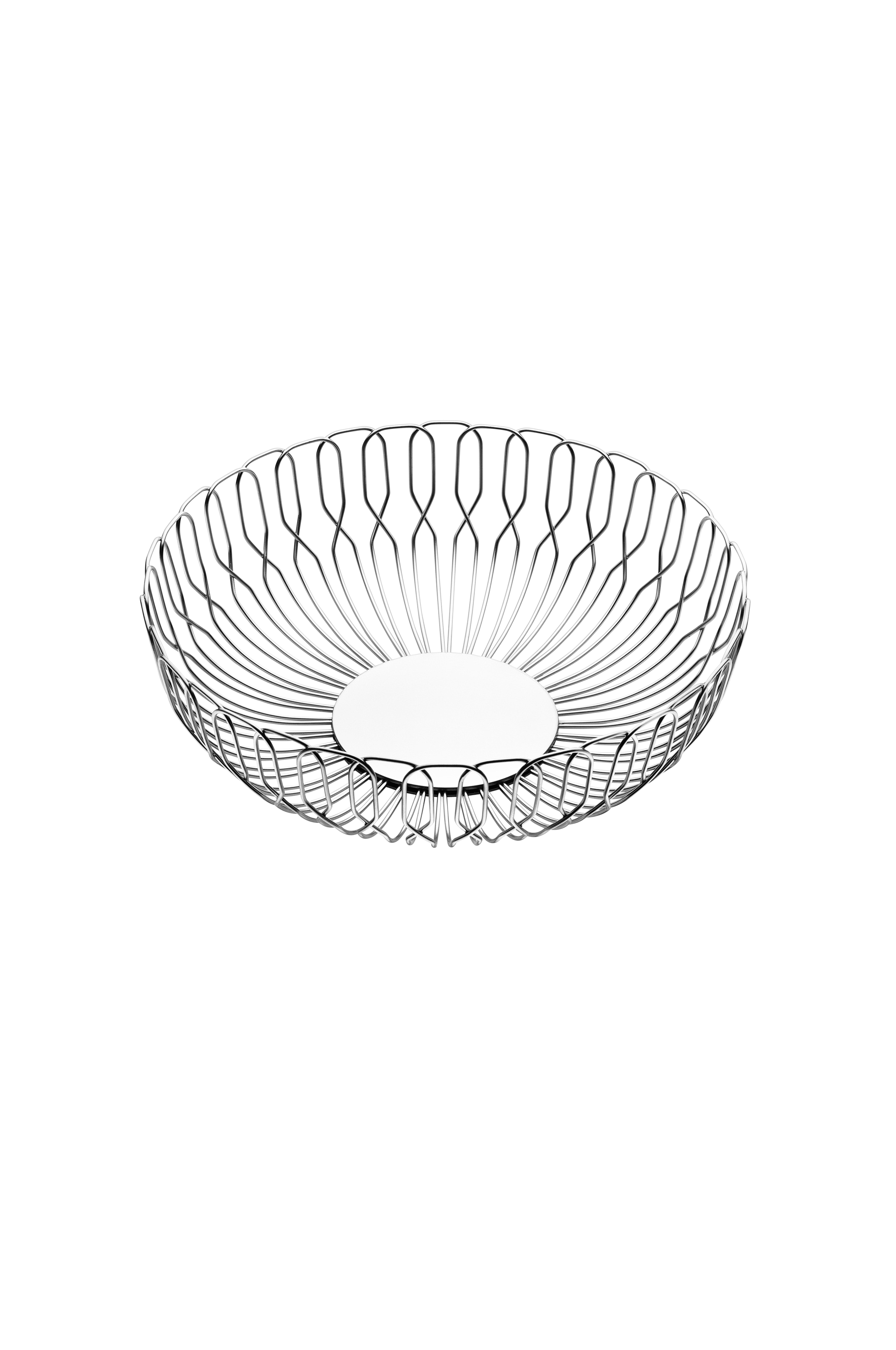 Brødkurv med en vævet form fremstillet i blankpoleret, rustfrit stål.