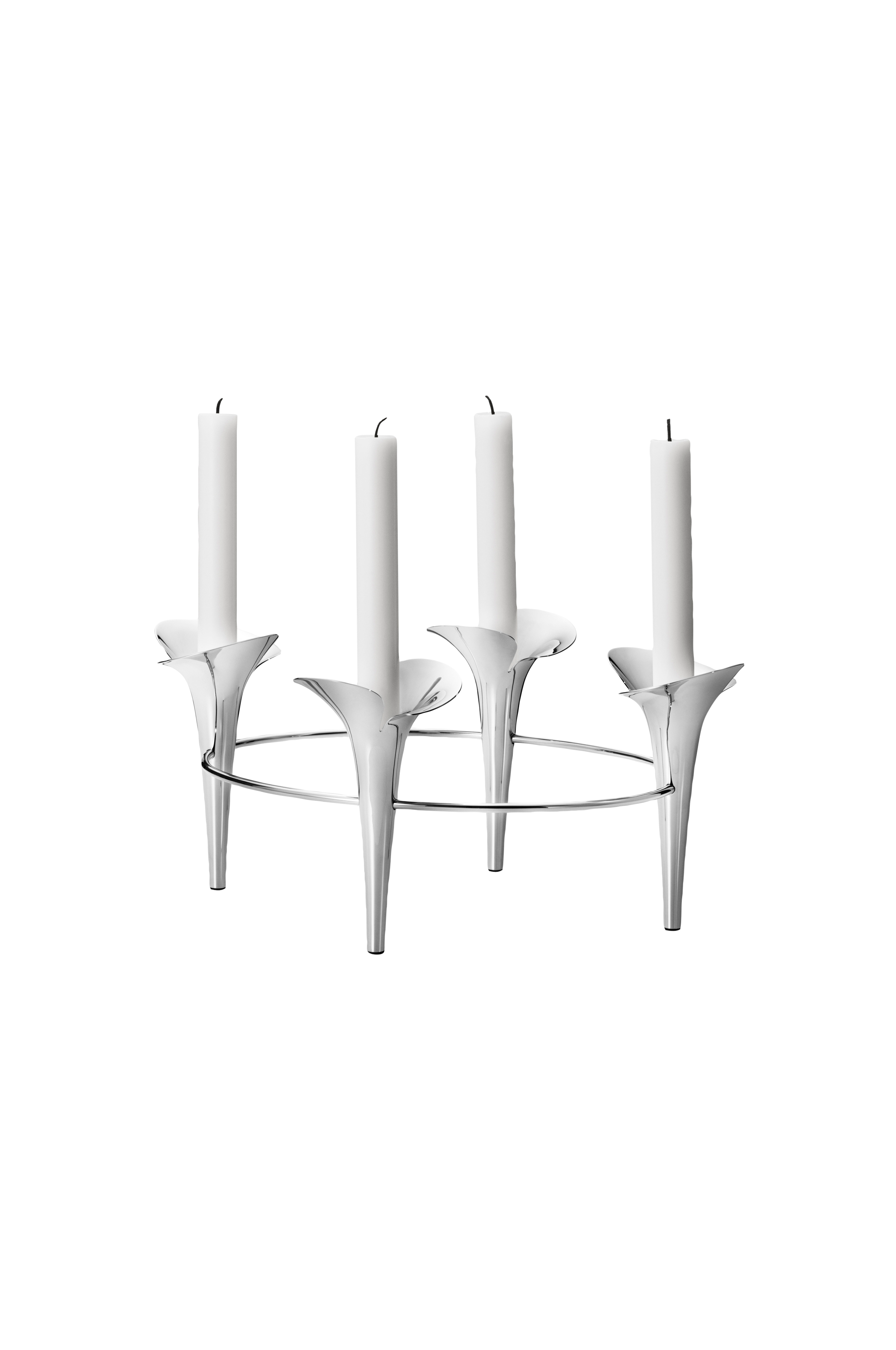 Denne elegante lysestage er lavet af blankt, rustfrit stål og har de karakteristiske designelementer fra Bloom-kollektionen, der lader naturens skønhed komme ind i hjemmet. Helle Damkjær har hentet inspiration fra de blomstrende kirsebærtræer i Japan, da hun designede den populære Bloom-kollektion.