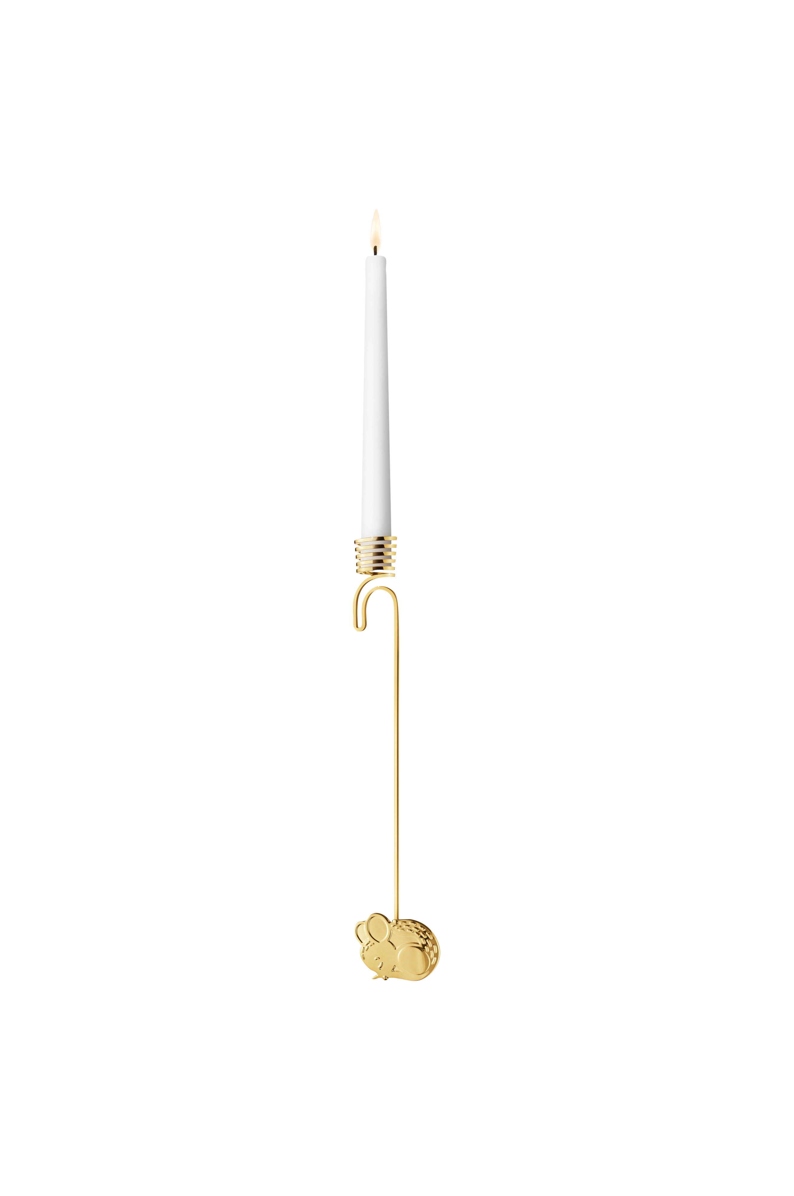 Lysholderne til juletræslysene i julekollektionen 2023 er pyntet med motiver fra vinterskoven, som har inspireret Sanne Lund Traberg til årets julekollektion. Denne lysholder forestiller en sovende mus og er lavet af zinklegering belagt med 18 karat guld. Motivet matcher kollektionens øvrige tre lysholdere, som også er inspireret af vinterskovmiljøet.
