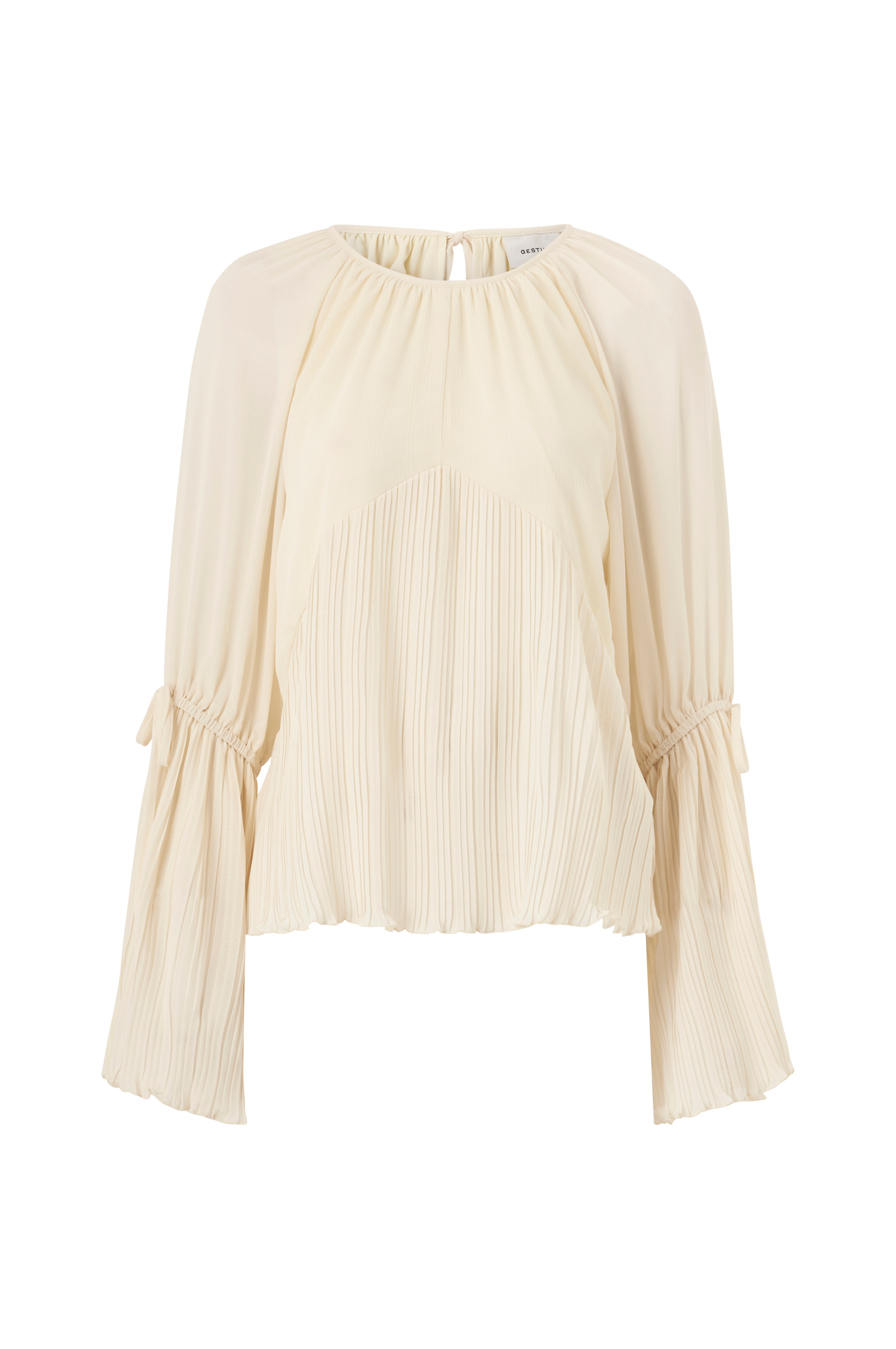• Plisserede detaljer • Rund hals med samling • Åbning i ryggen • Bindebånd i nakken • Brede ærmer med plisserede ærmeafslutninger med svaj og bindebånd • Trikotfor på toppen • Produktet indeholder genindvundet materiale, som genbruges for at reducere mængden af affald samtidigt med at der ikke anvendes nye ressourcer.