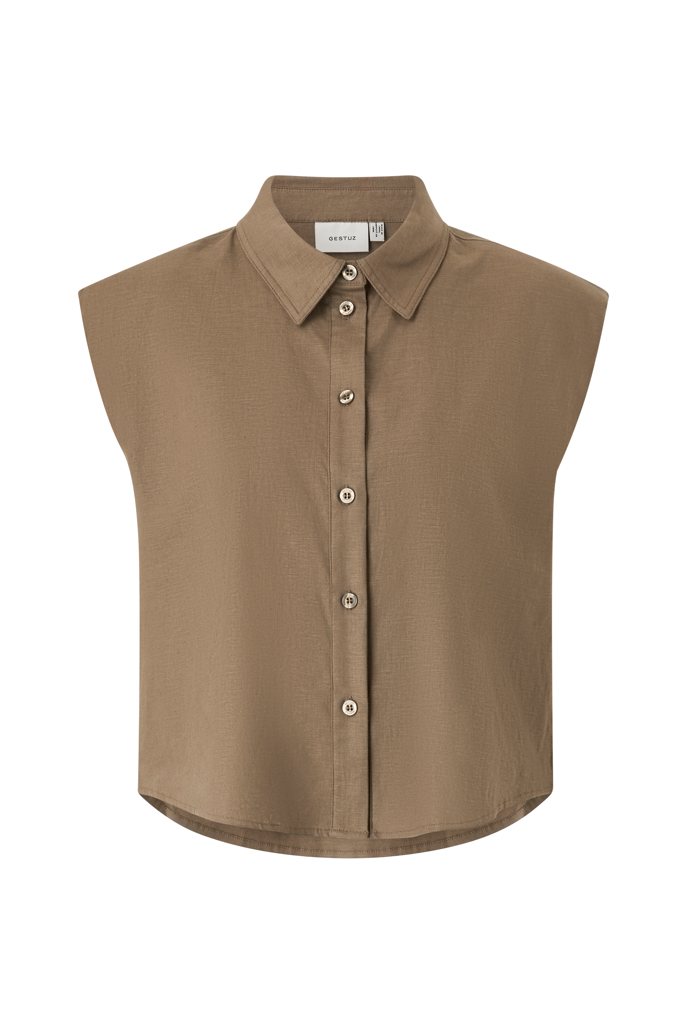 • Ærmeløs skjorte i hørblanding• Firkantet pasform• Skulderpuder• Knapper foran