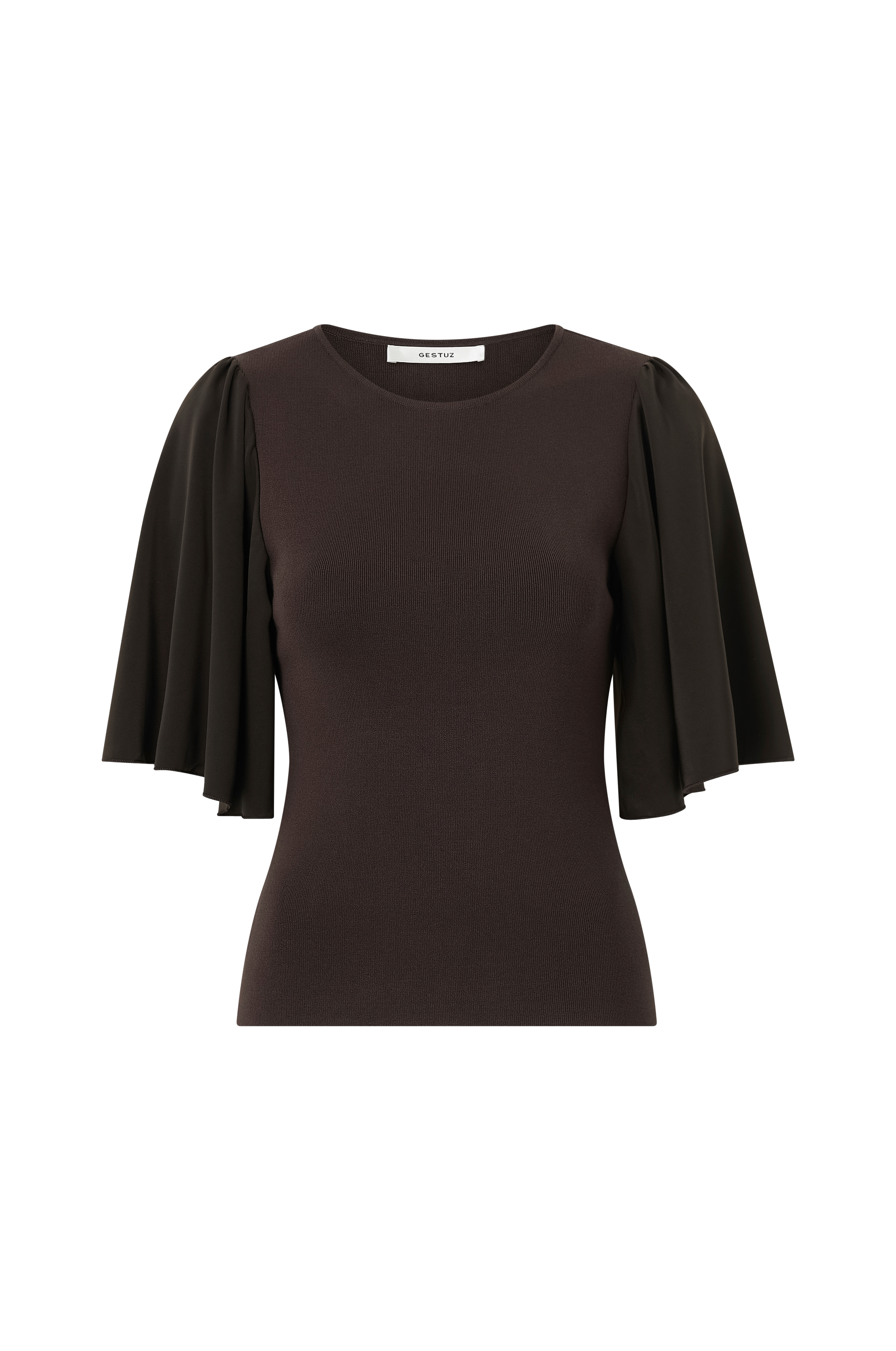 • Figurformede model• Rund hals• Ekstra bredt ballonærme i satin