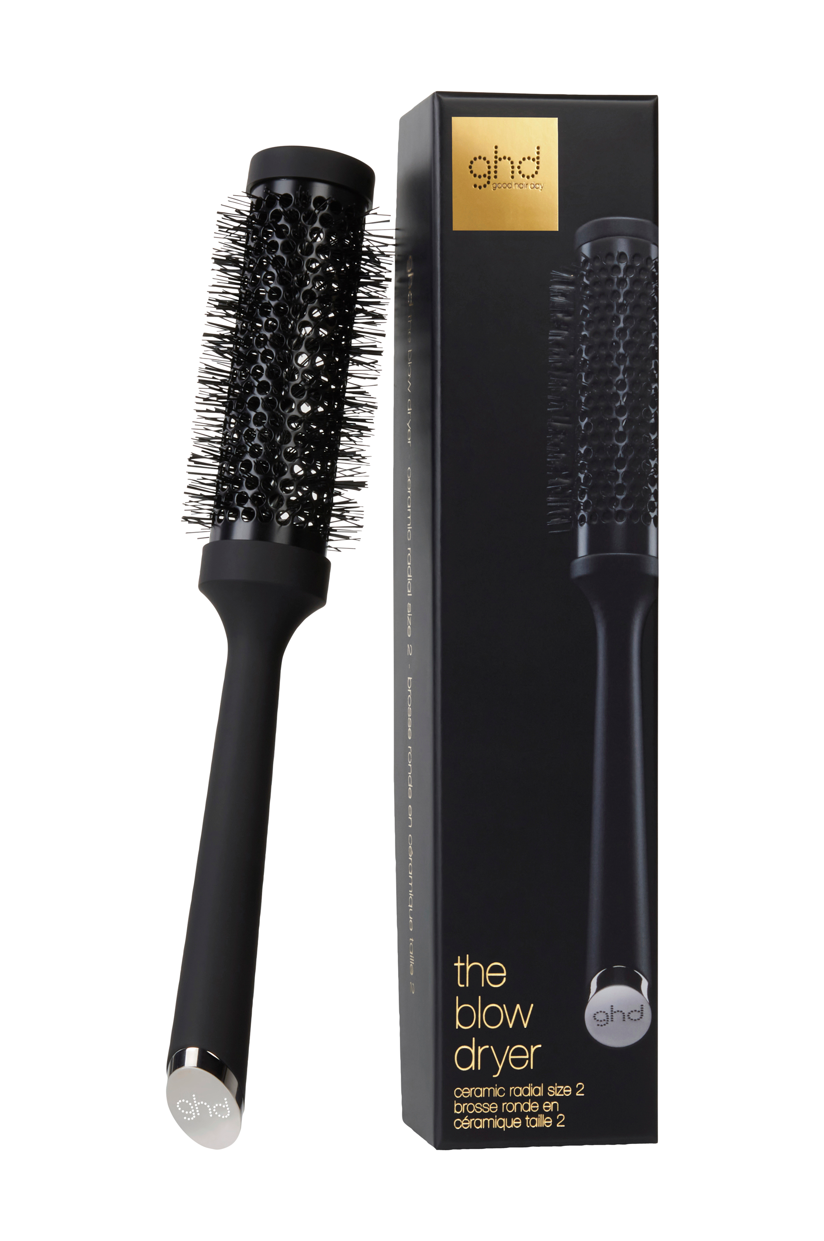 Det mellemstore børstehoved (størrelse 2) er alsidigt og hjælper med til at give tekstur og fylde eller smidighed i kort til halvlangt hår. Børsten med keramisk børstehoved bevarer varmen bedre for en hurtigere føntørring.