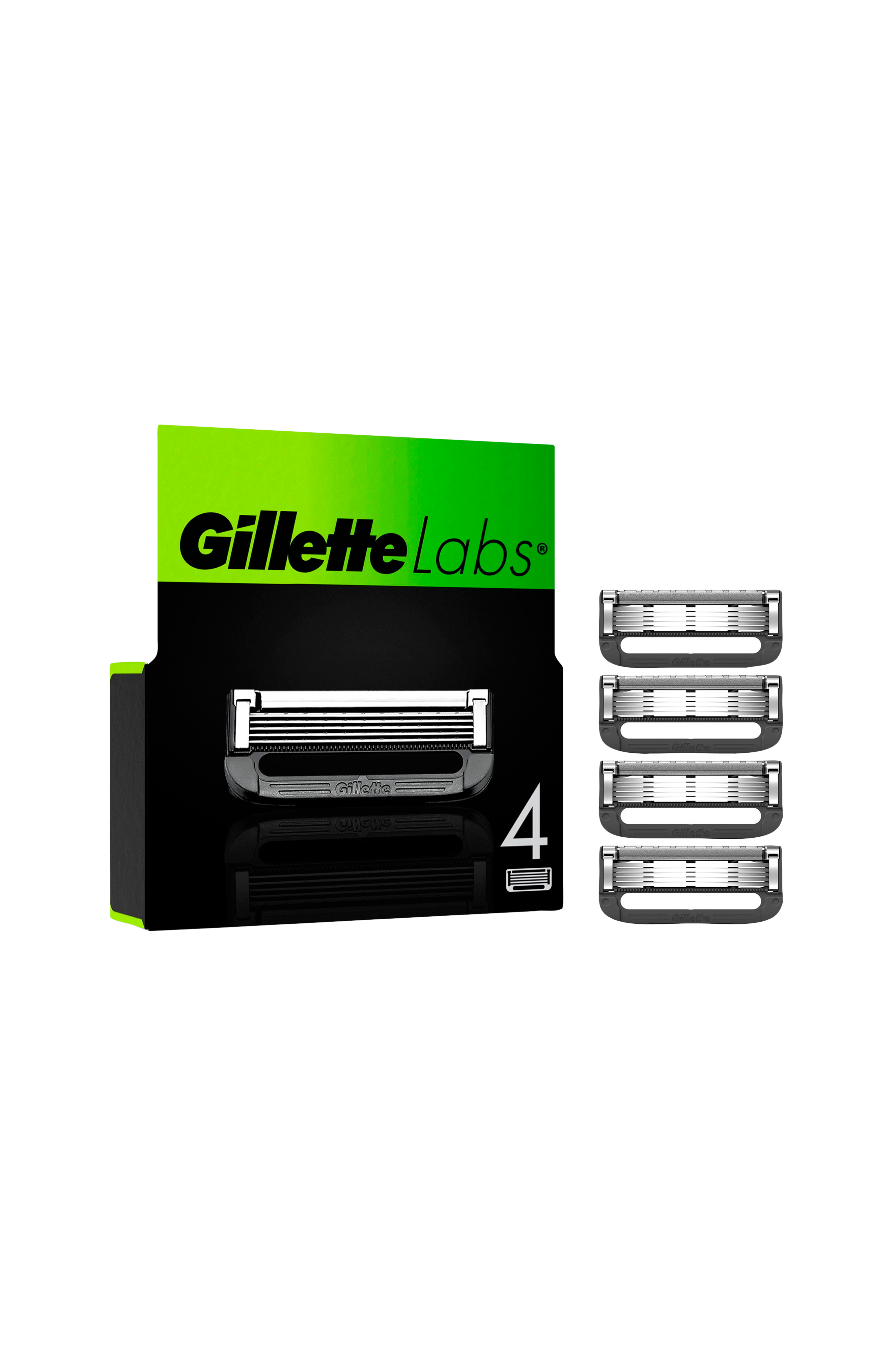 Gillette Labs barberblade fra Gillette kan bruges sammen med alle Gillette Labs barberskrabere. Denne innovative barberbladrefill har fem skarpe barberblade og en åbning i midten, hvor eksfolieringsstrimlen passer og klikker på plads med et enkelt klik.
