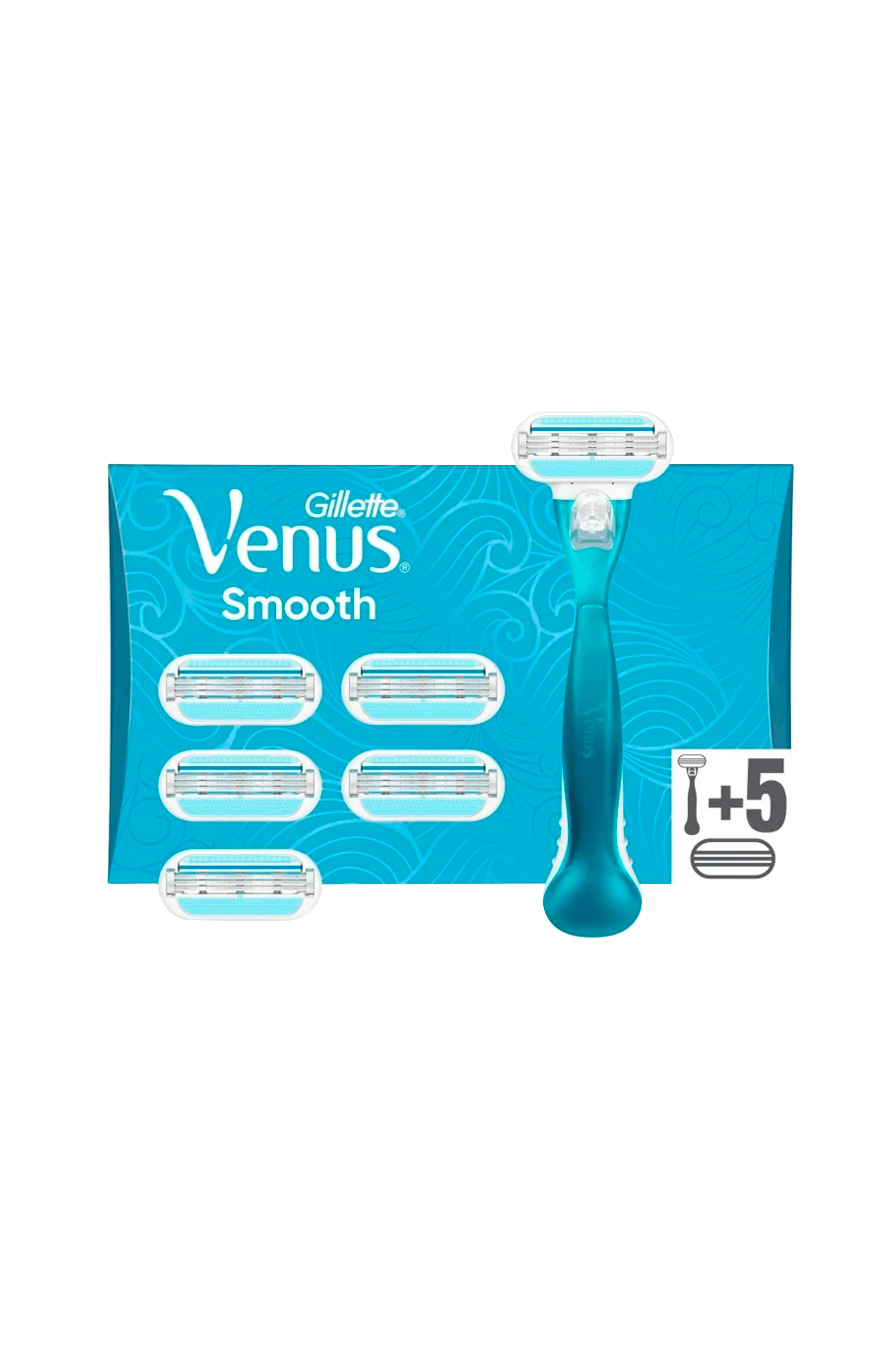 Venus Smooth-barberskrabere til kvinder er de første 3-blads barberskrabere designet til kvinder. Refill-barberbladene har 3 konturtilpassede blade omgivet af beskyttende puder, der trækker huden ud for en hurtig og nem barbering med pålidelige resultater. De har også en blå indikatorstribe som bliver lysere i farven, når du ikke længere får en optimal barbering.