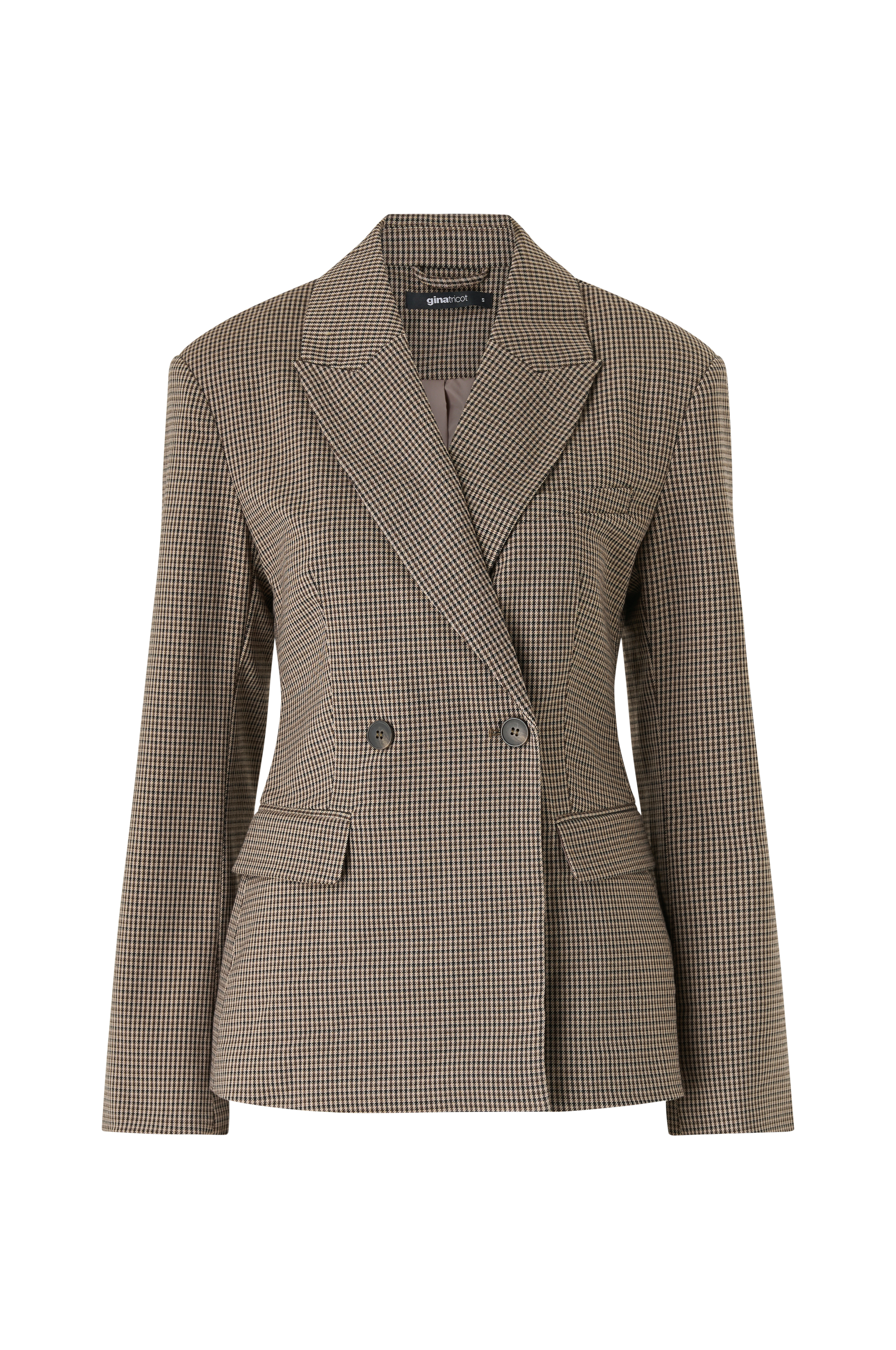 • Ternet blazer• Krave med revers• Skulderpuder• Dobbelt knaplukning• Tekstilforing• To paspolerede lommer• Normal pasform• Længde: 66 cm i størrelse S