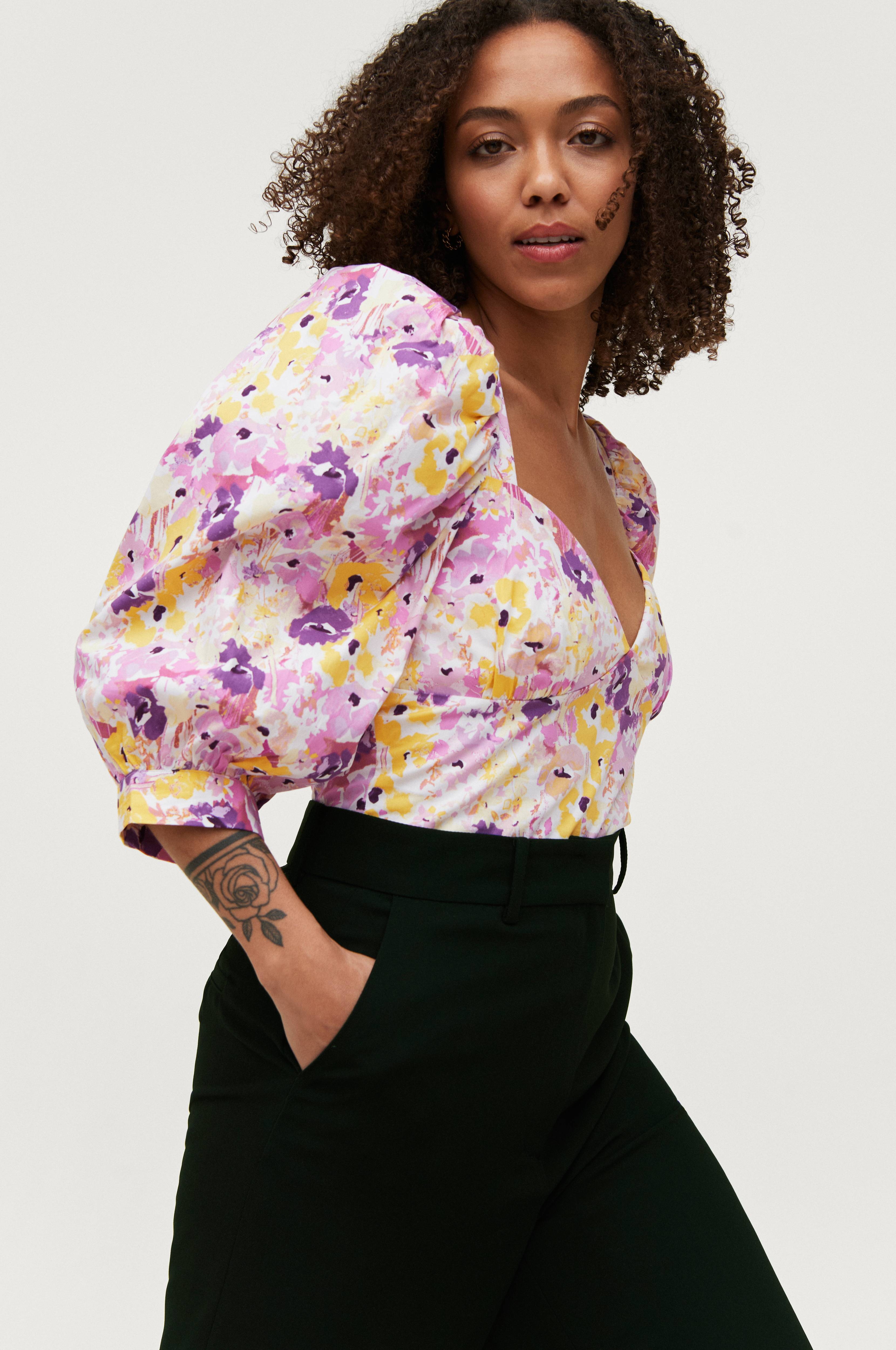 • Kort model• Dekorativ halsudskæring• 3/4 langt ballonærme med manchet• Smock i ryggen
