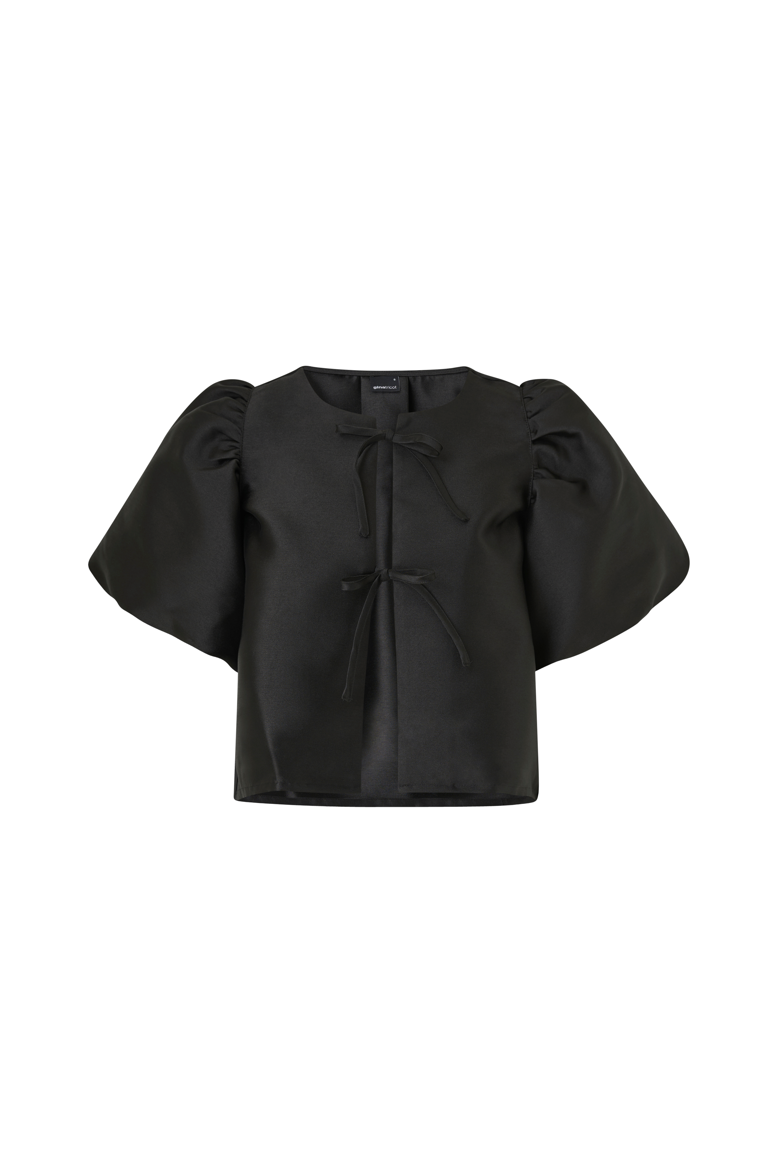 • Kort, bred model• Rund hals• Bindebånd foran• Kort, bredt ballonærme