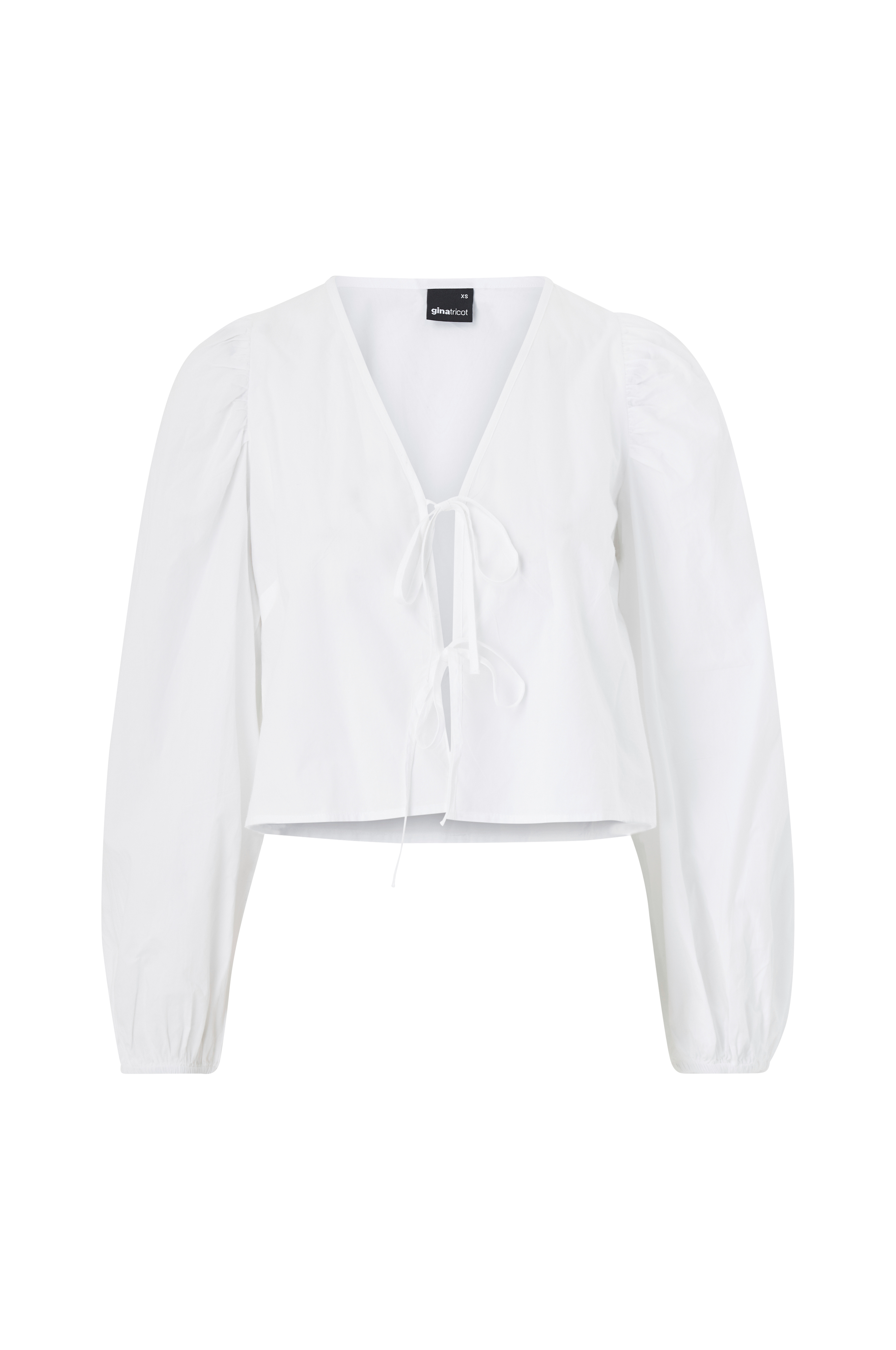 • Lige model• V-formet halsudskæring• Tynde bindebånd foran• Langt, bredt ballonærme med elastik ved manchetterne