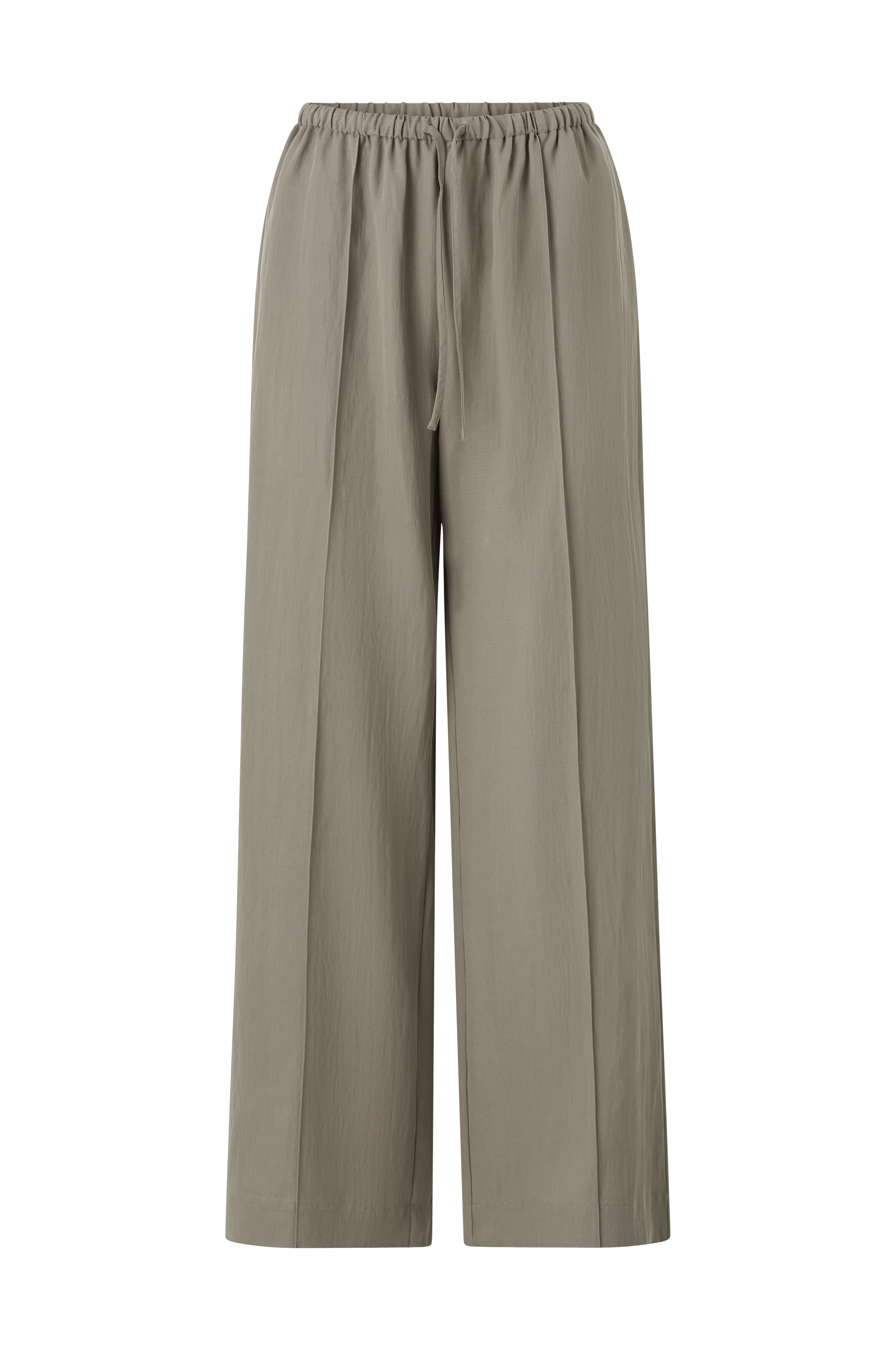 • Bukser med brede ben• Elastisk talje med træksnørre• Sidelommer• Syede pressefolder foran• Indre benlængde: 77 cm i størrelse S