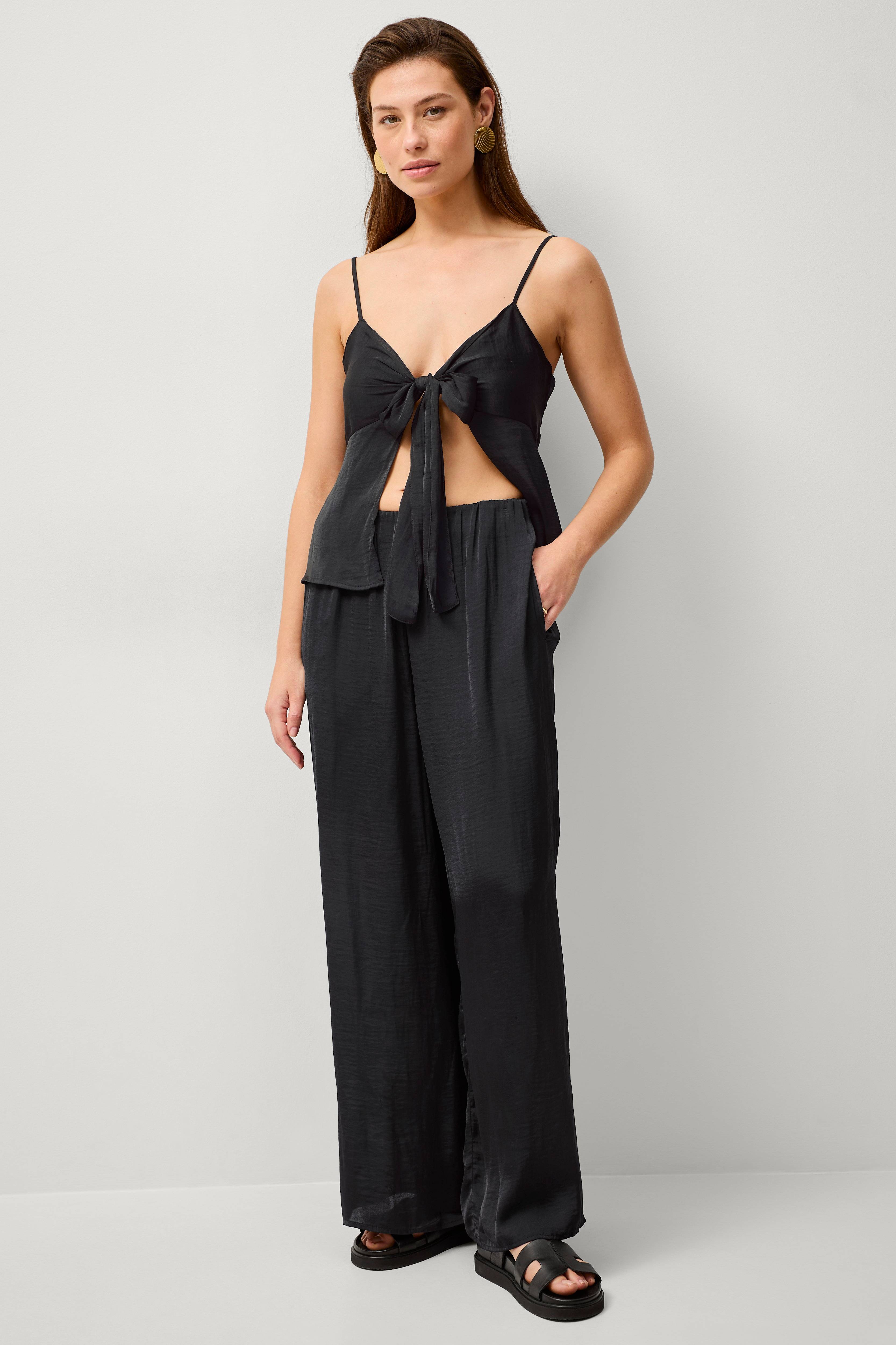 • Model i satin med brede, lige ben• Indvendig elastik på toppen• Indlagte sidelommer• Længde: 71 cm i størrelse 36