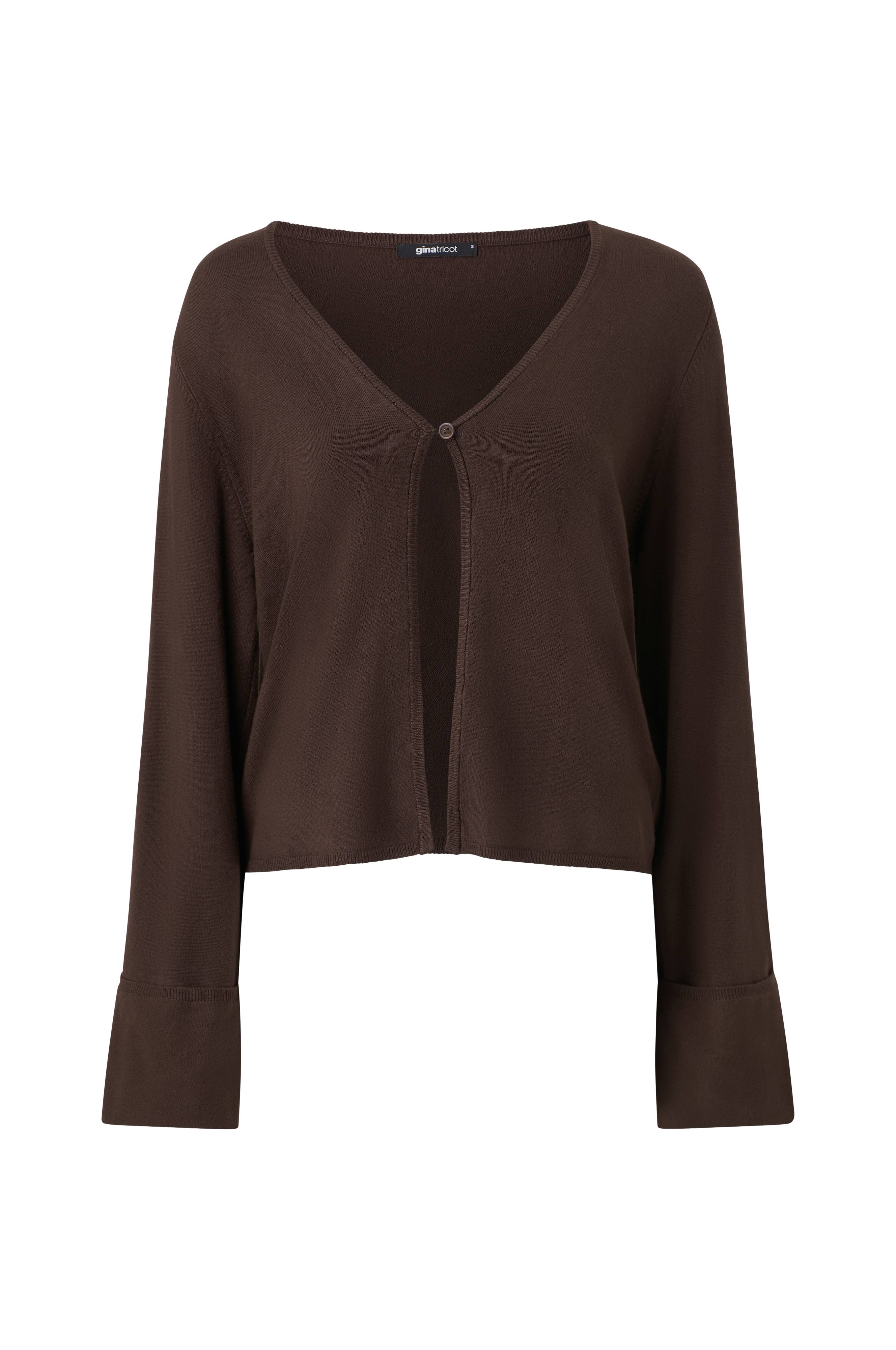 • Blød, fintstrikket cardigan i viskoseblanding• V-formet halsudskæring• En knap foran• Lange ærmer med foldede ærmeafslutninger• Ribbede kanter