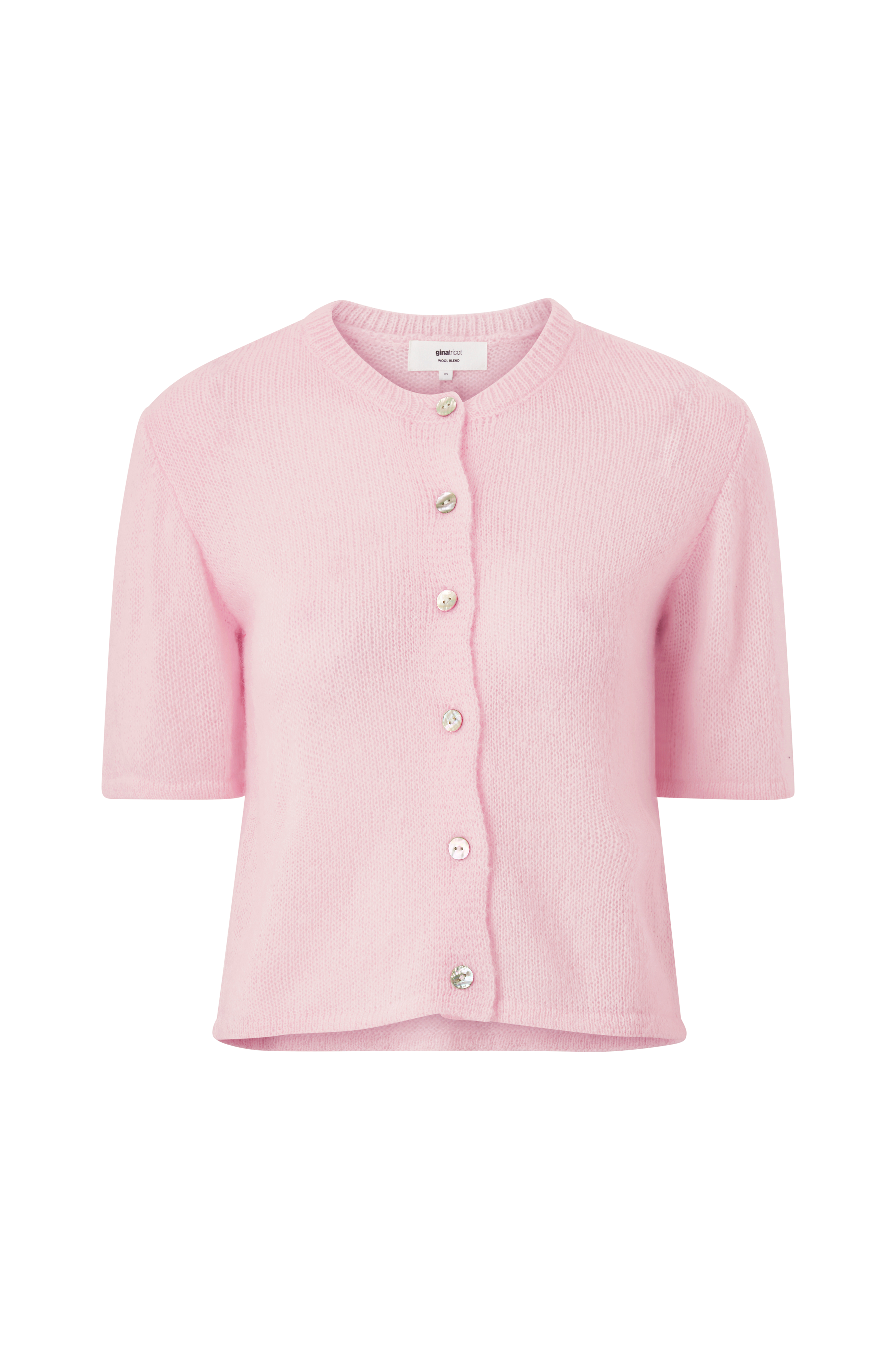• Løststrikket cardigan med rund, ribbet halsudskæring• Skinnende knapper ved fronten• Korte ærmer