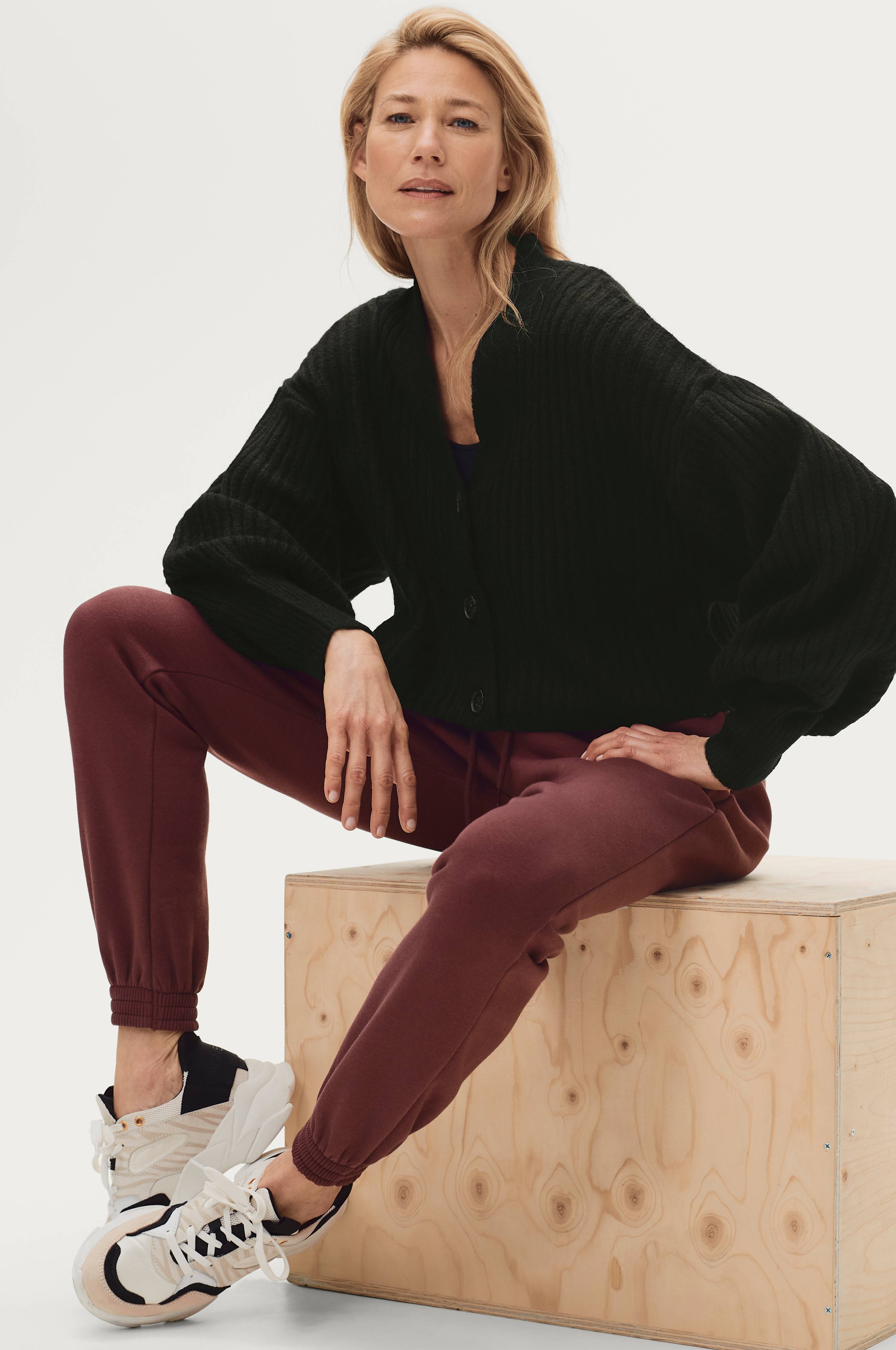 Strikket cardigan i kort model. Lange, vide ærmer med smal ribkant i ærmekant. Tre knapper.