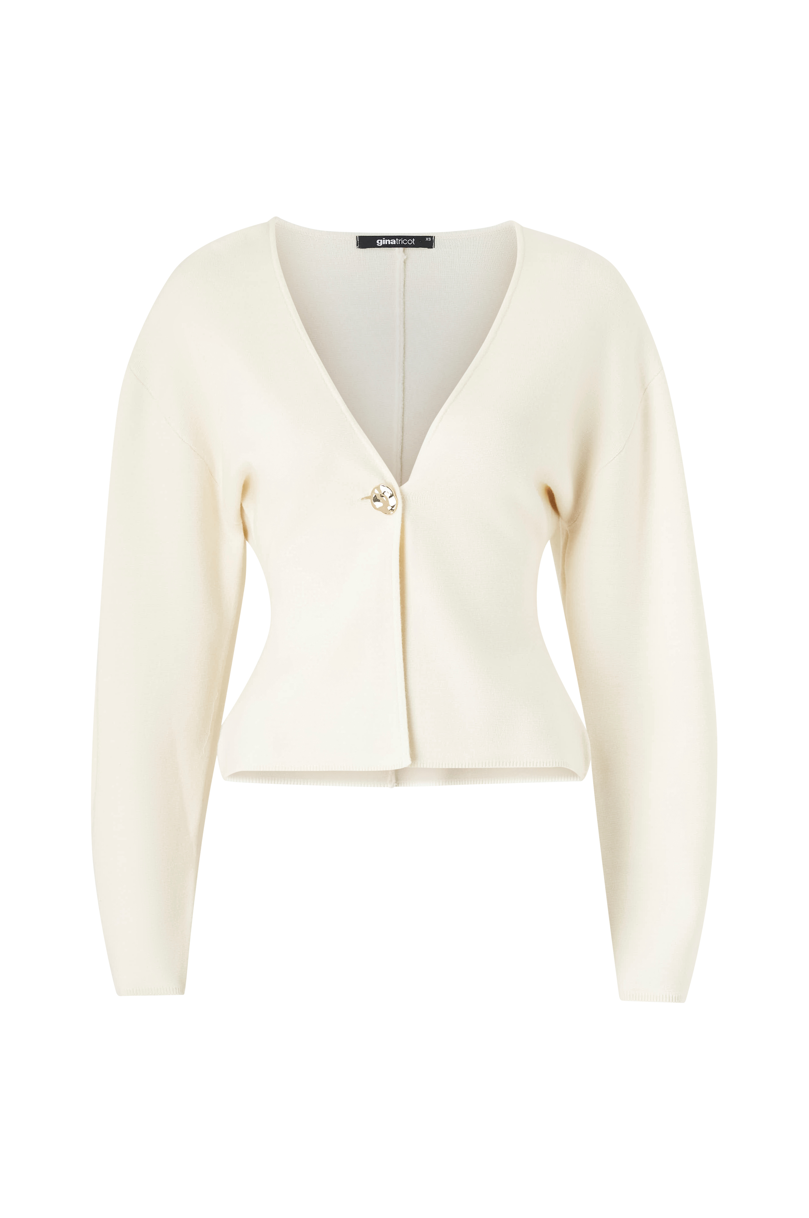 • Figurformede model• V-formet halsudskæring• Stor, glat knap• Langt ærme