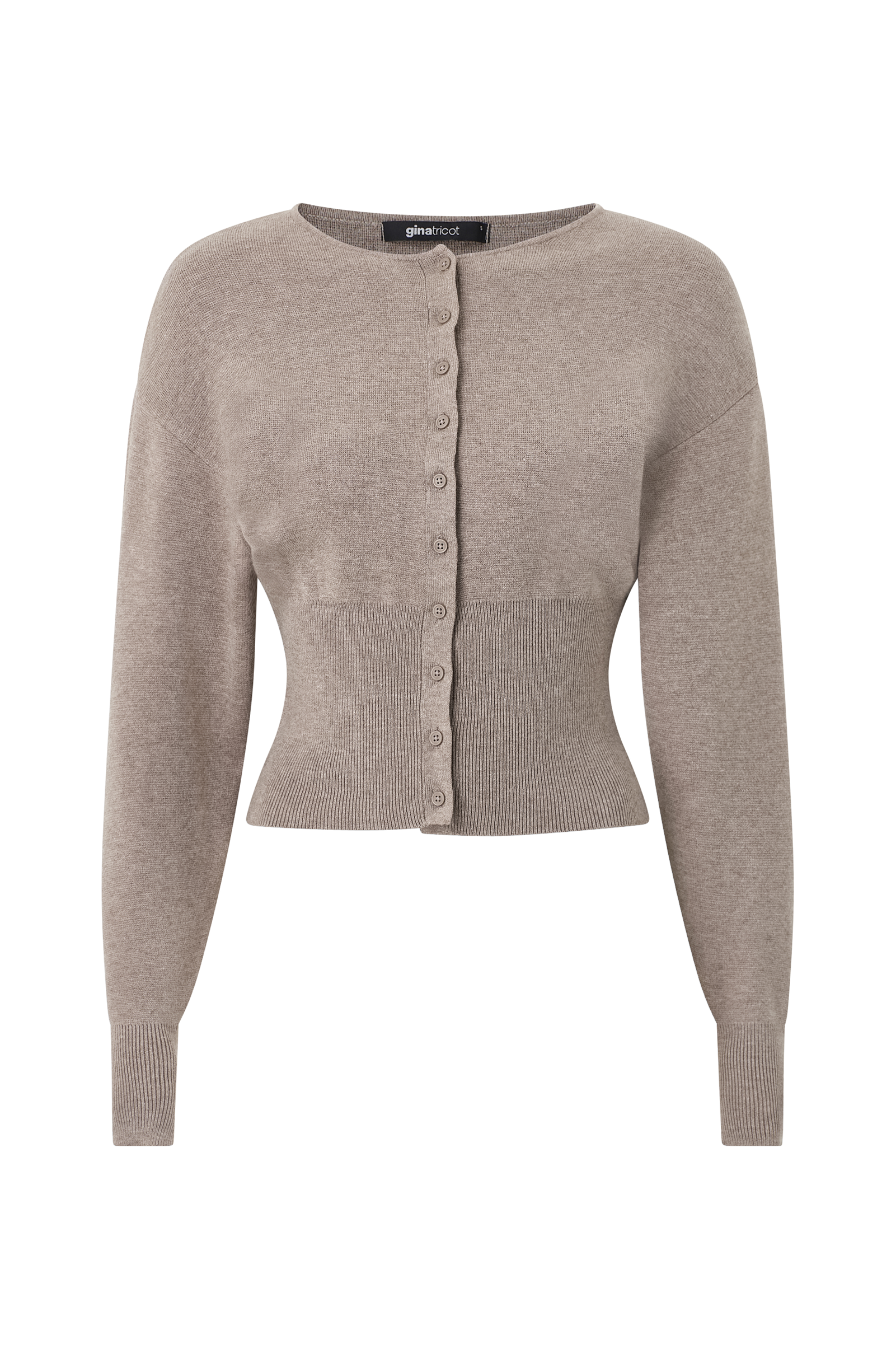 • Fintstrikket, figursyet cardigan med rund halsudskæring• Knaplukning• Lange, indsnævrende ærmer• Brede, ribstrikkede manchetter ved manchetterne og nederst