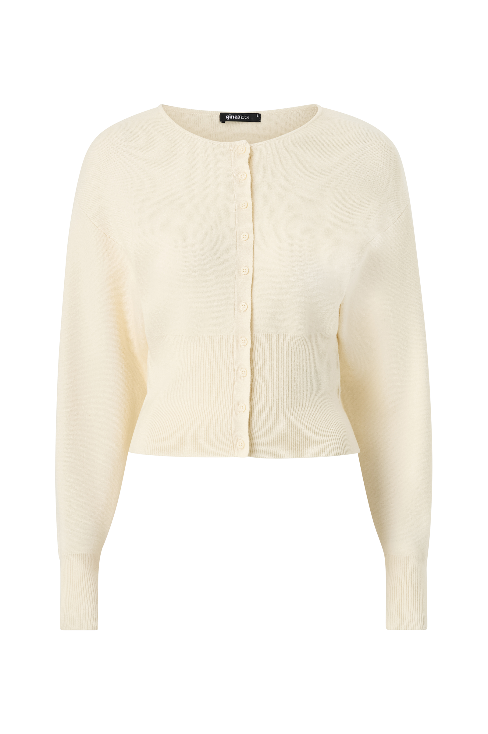 • Fintstrikket, figursyet cardigan med rund halsudskæring• Knaplukning• Lange, indsnævrende ærmer• Brede, ribstrikkede manchetter ved manchetterne og nederst