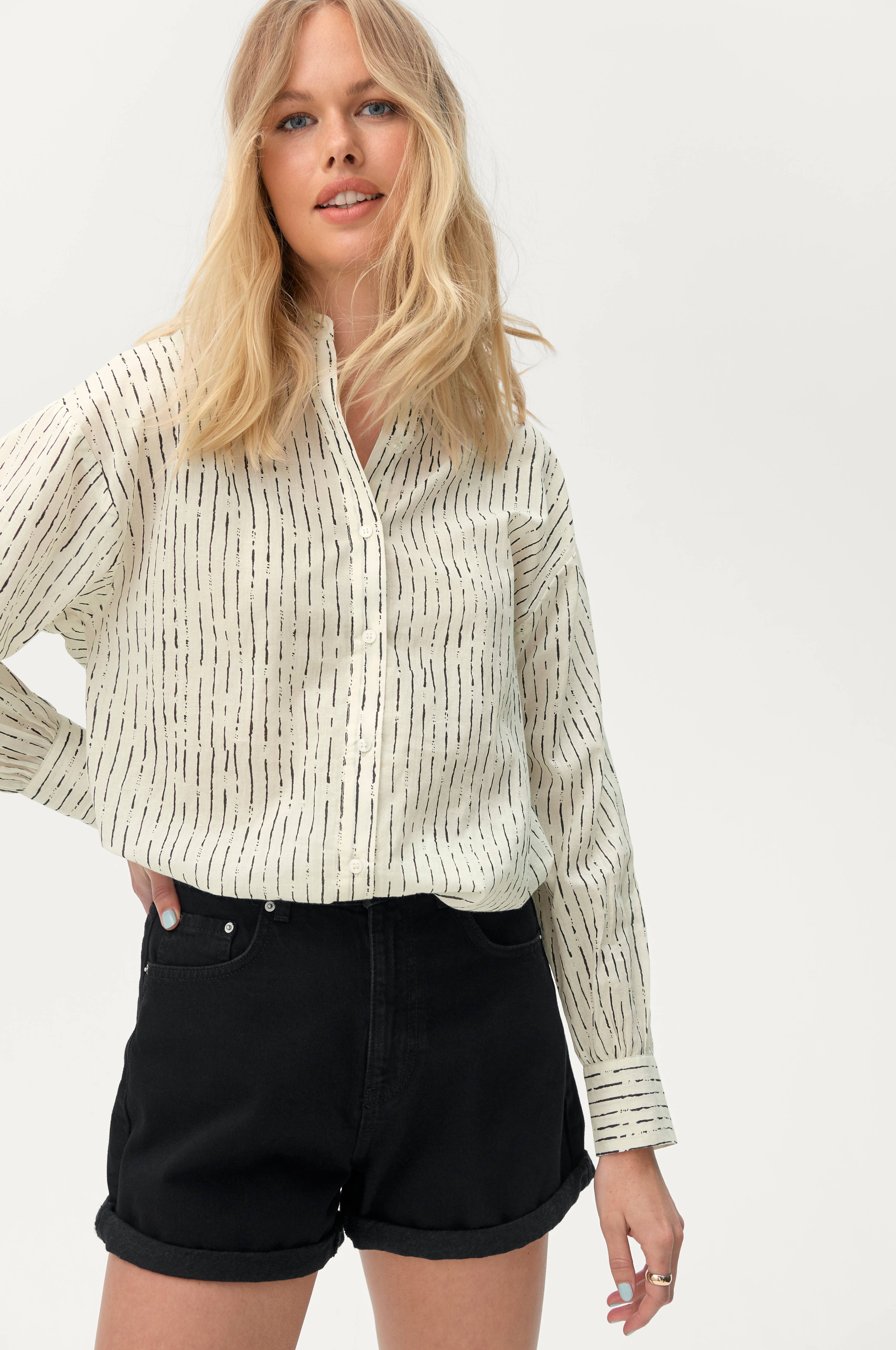 Denimshorts Dagny Mom Shorts fra Gina Tricot i 5-lommemodel med høj talje og vide ben. Gylp med lynlås. I denim uden stretch.