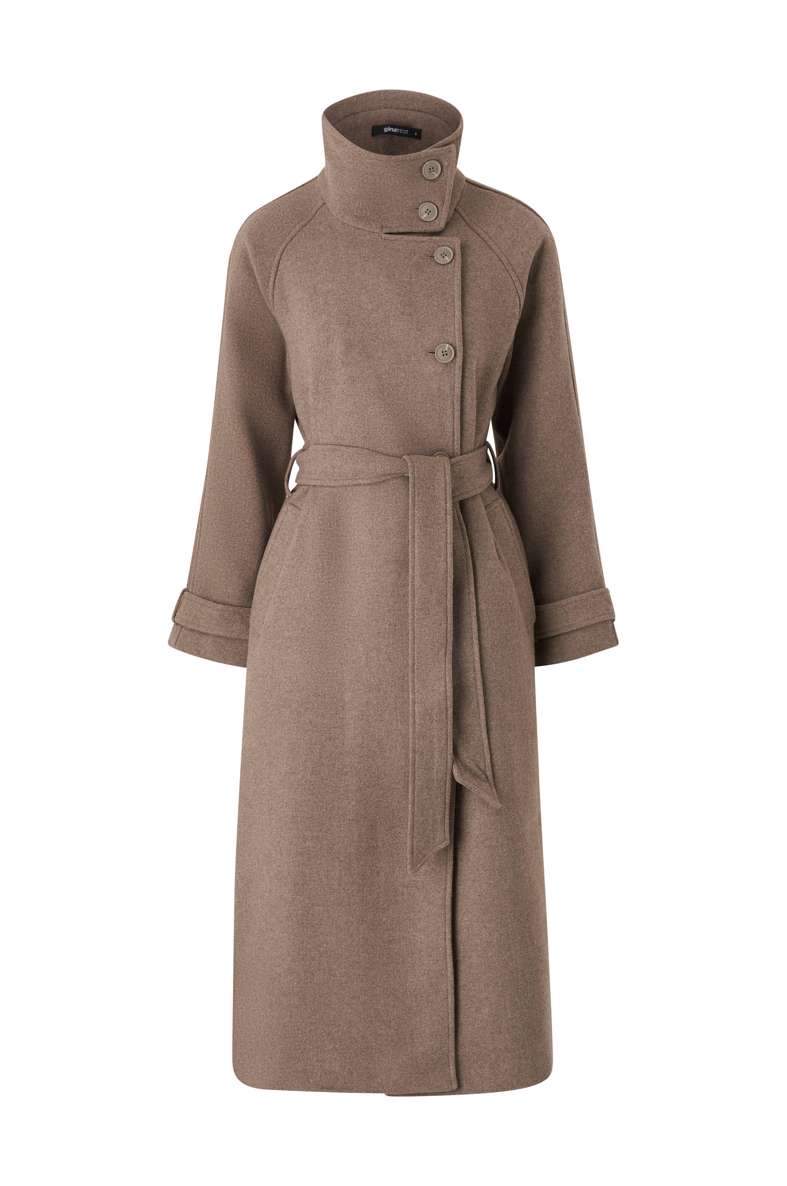 • Lang frakke i uldblanding• Oversize pasform• Høj, knapbar krave• Tre knapper• Aftageligt bindebælte ved taljen• Justérbar strop ved ærmeafslutningerne• Sidelommer• Slids bagpå• Længde: 123 cm i størrelse S