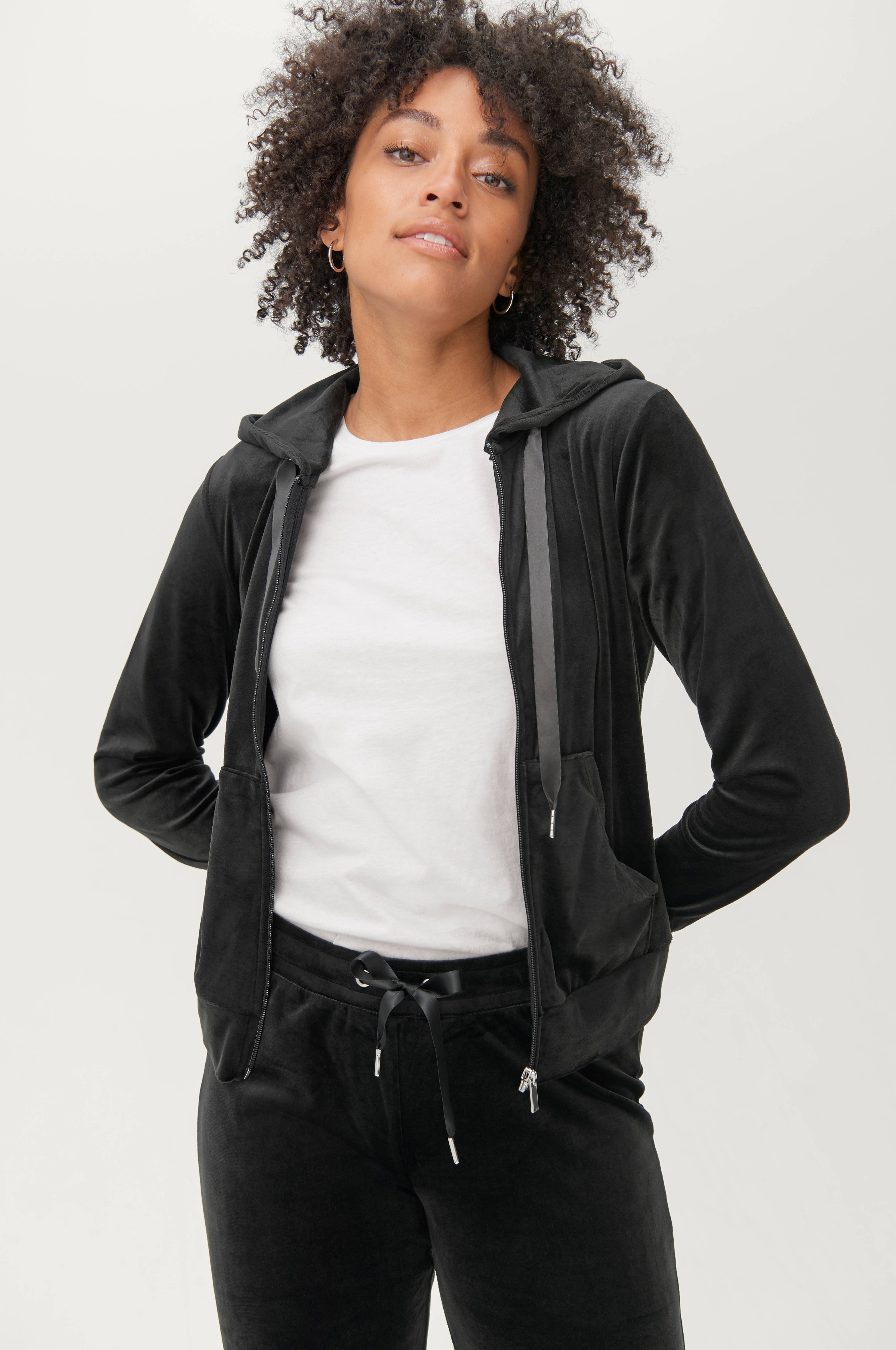 Hættetrøje Cecilia Velour Hoodie fra Gina Tricot i blød velour. Hætte med vævede, matchende bånd i løbegang. Lynlås og to lommer. Ribkanter i ærmet og forneden.
