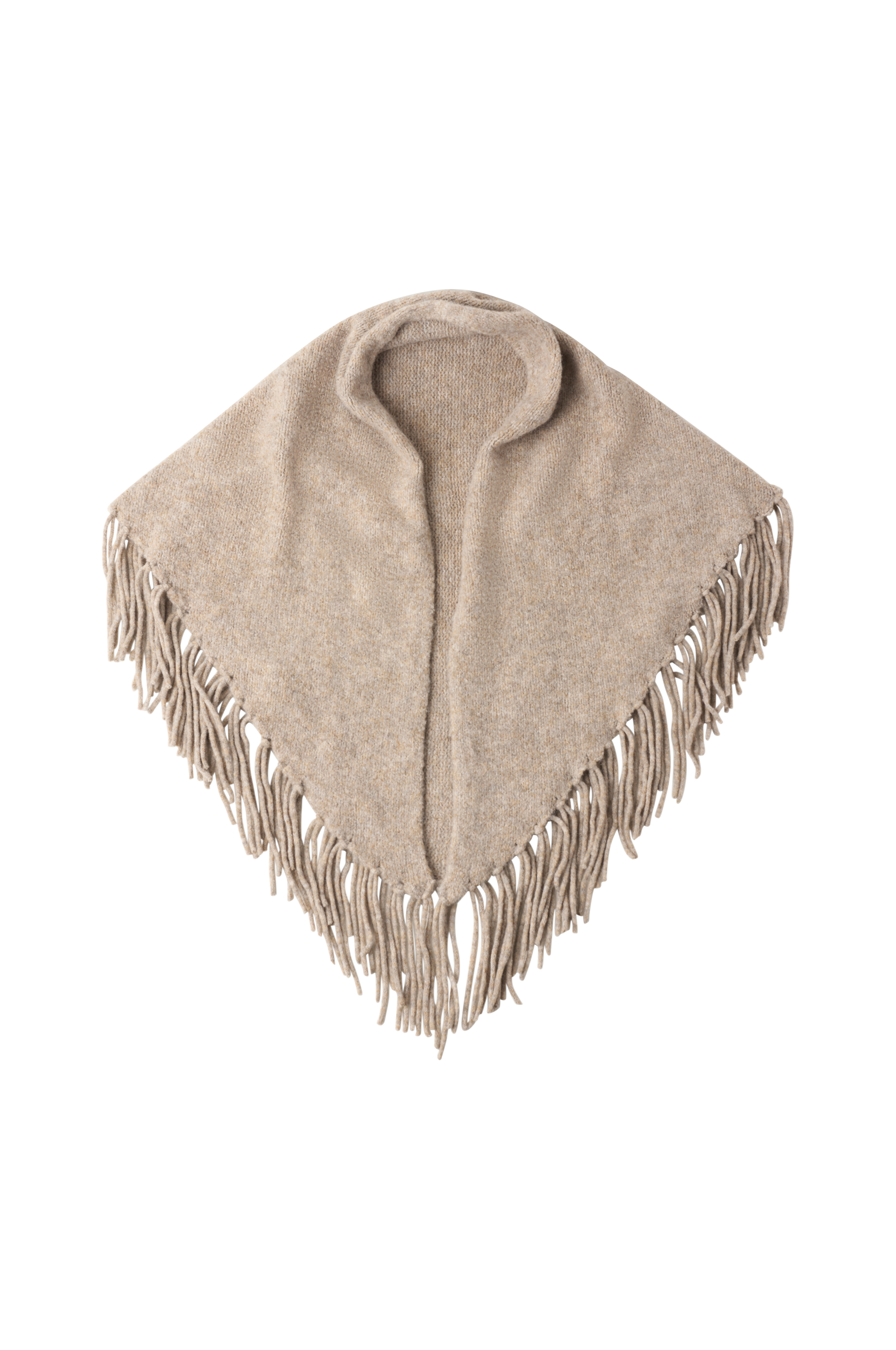 • Trekantet, fintstrikket halstørklæde• Frynser på den ydre kant